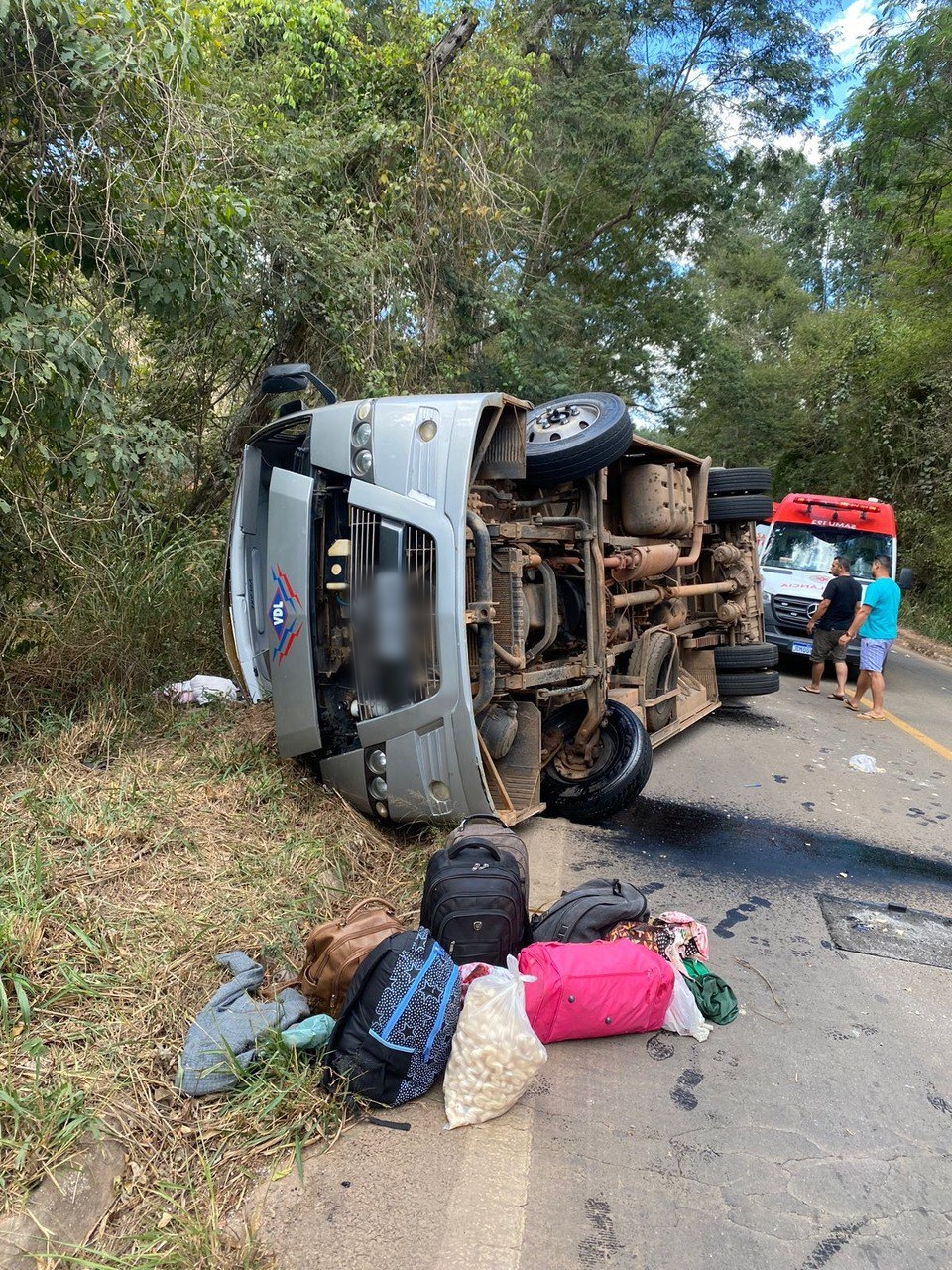 Um micro-ônibus terceirizado pela Prefeitura Municipal de Capelinha tombou na MGC-120, na saída de São João Evangelista, sentido Guanhães, cerca de 2 km.