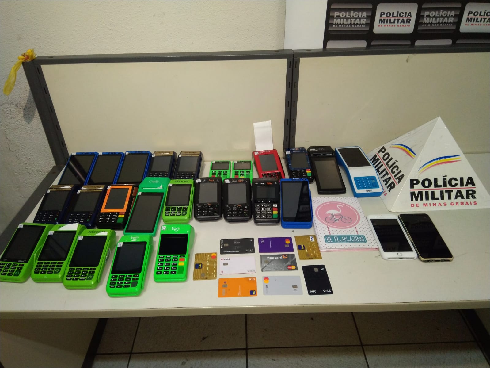 Segundo a Polícia Militar (PM), após denúncias, a guarnição policial abordou uma mulher de 27 anos, num estabelecimento comercial no bairro Niterói e localizou com ela 25 máquinas de cartões, 9 cartões bancários com titularidades diversas e vários comprovantes de transações bancárias.
