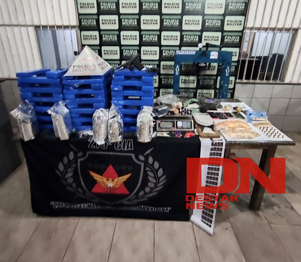 Ainda foram localizadas porções de crack, cocaína, uma pistola calibre.380 e uma moto, que foi apreendida. Os policiais diligenciaram até a casa do autor de 24 anos, no bairro Morada do Vale, onde foi recolhida uma prensa hidraúliaca, balança e uma porção de maconha.
