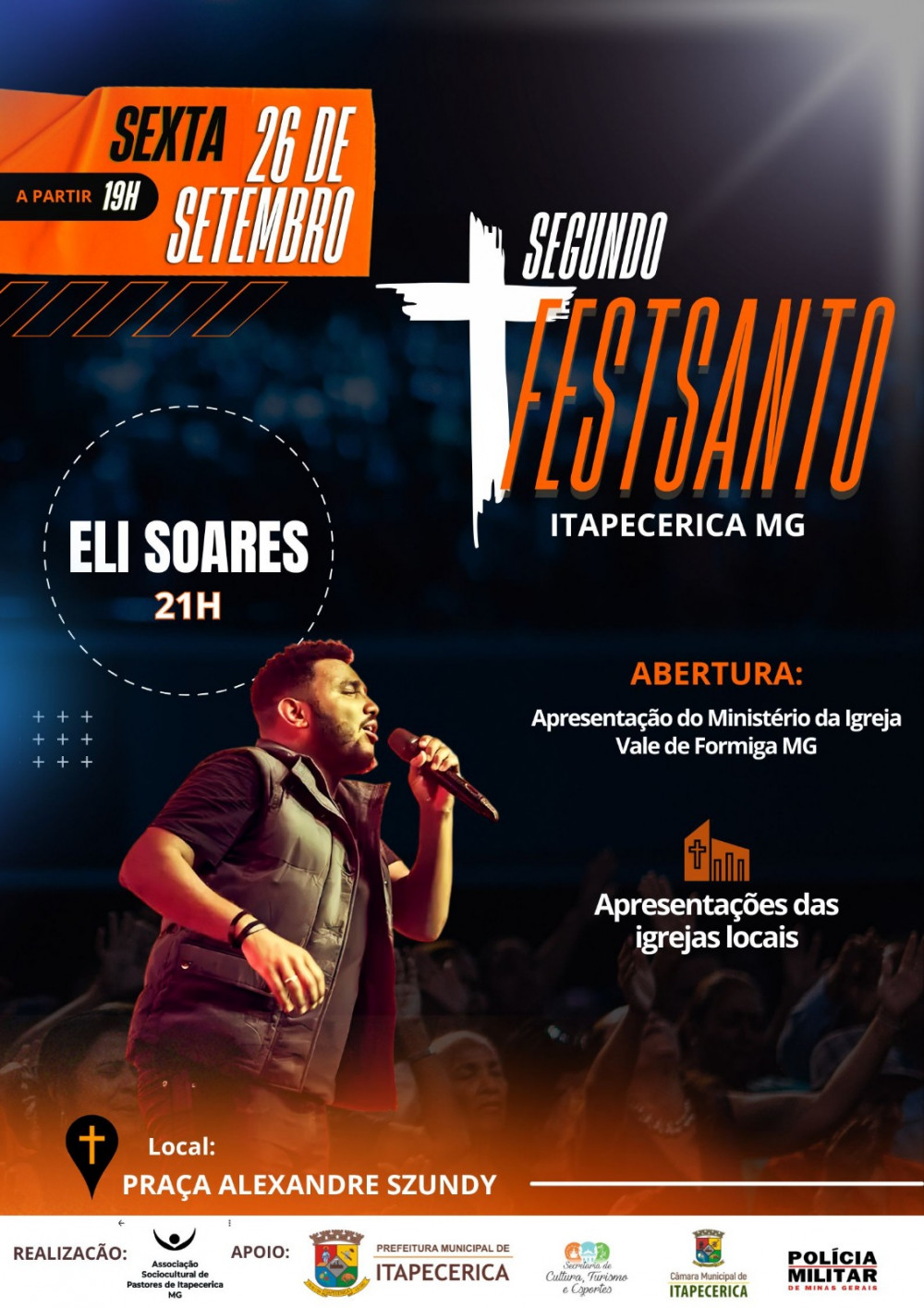 O FESTSANTO é uma realização da Associação dos Ministros e Pastores de Itapecerica, com o apoio fundamental de diversas instituições. A Prefeitura Municipal, a Secretaria Municipal de Cultura, Turismo e Esportes, a Câmara Municipal e a Polícia Militar de Minas Gerais estão unidas para garantir a segurança e a infraestrutura necessárias, permitindo que a população desfrute de uma noite de paz e adoração.