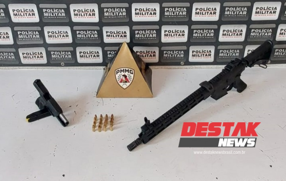 01 Fuzil Taurus, modelo T4, calibre 5.56, uma arma de uso restrito e de grande poder de fogo, frequentemente utilizada por grupos criminosos de alta periculosidade.