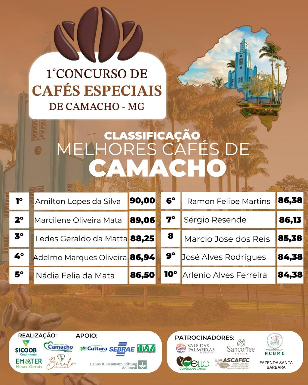 A classificação final do concurso premiou a dedicação dos seguintes cafeicultores: