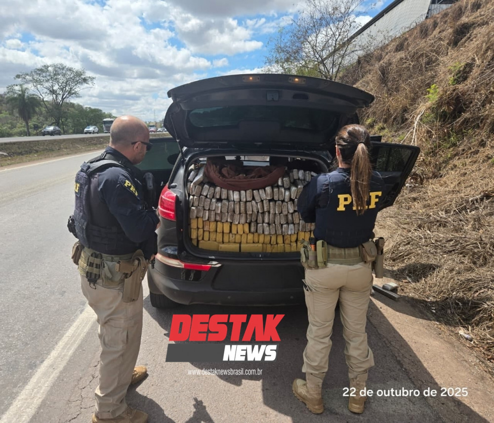 A fiscalização revelou que a droga estava acondicionada em cerca de 890 tabletes de Maconha, que ocupavam todos os espaços internos do Kia Sportage, desde o porta-malas até o banco traseiro e o espaço dos passageiros, evidenciando o transporte em grande escala.