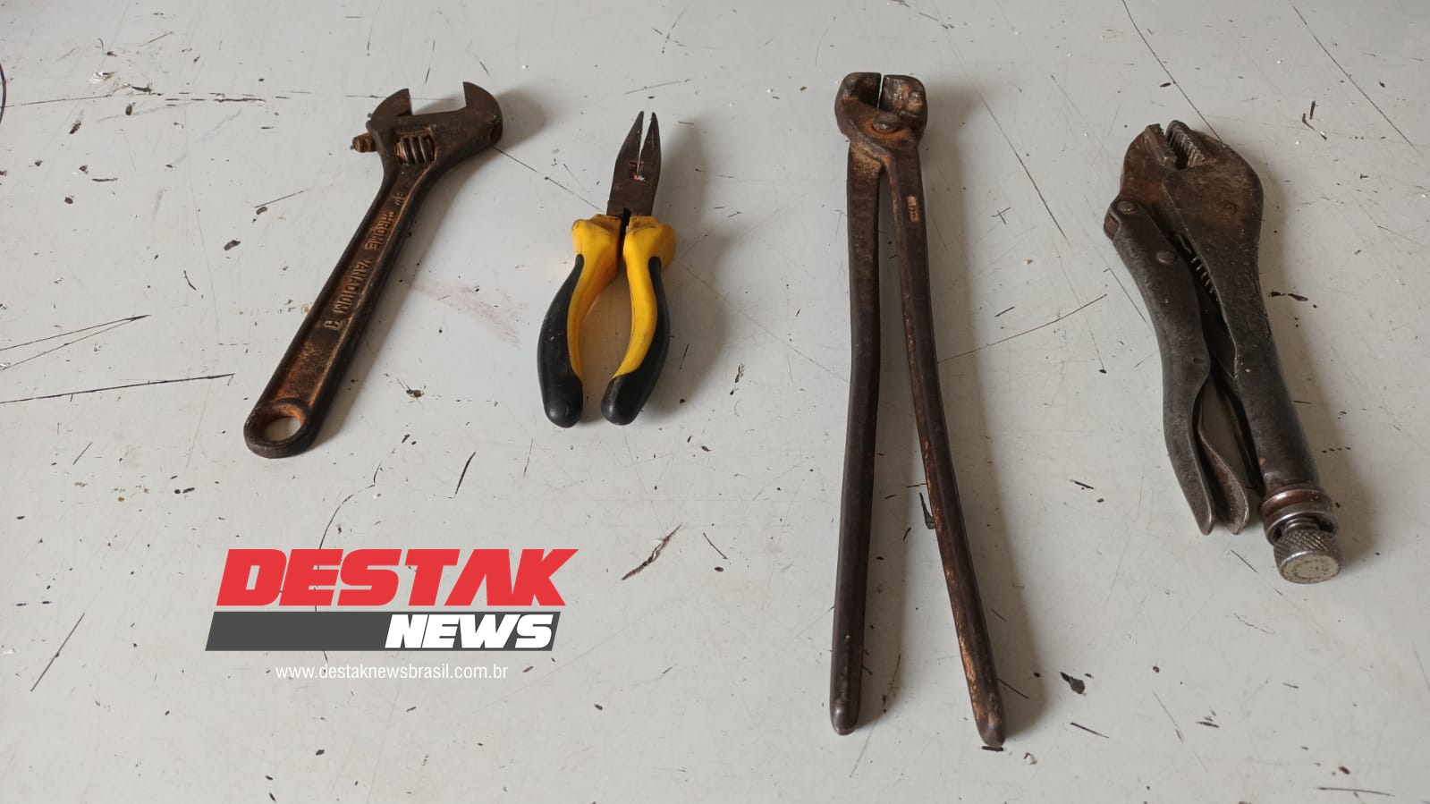 No local, a PM apreendeu as seguintes ferramentas que foram deixadas ou utilizadas na ação criminosa: