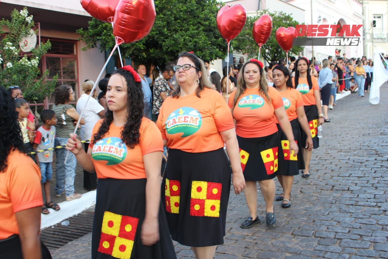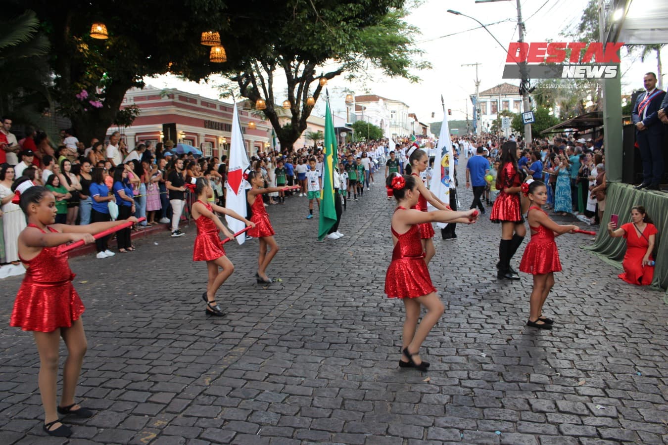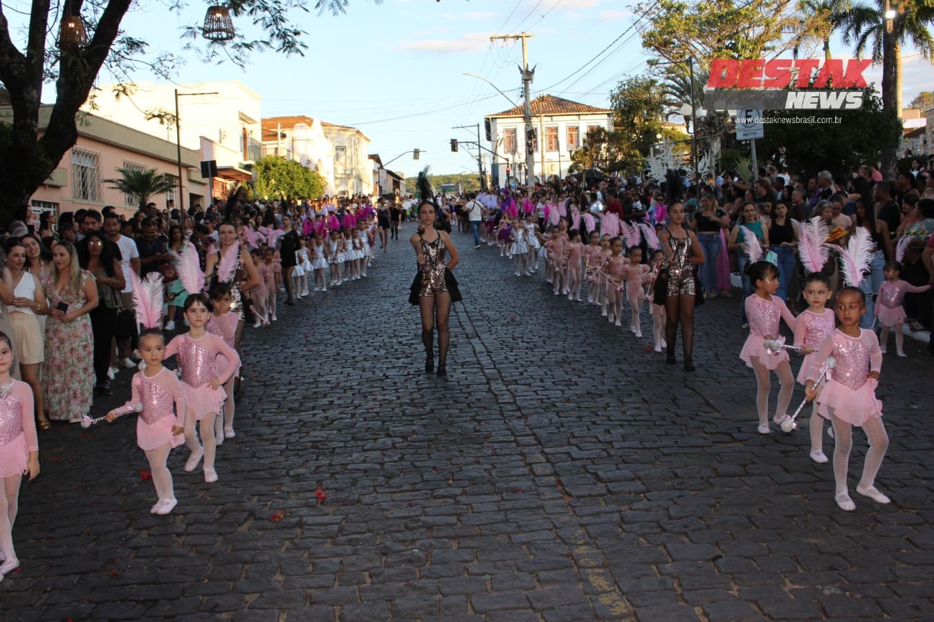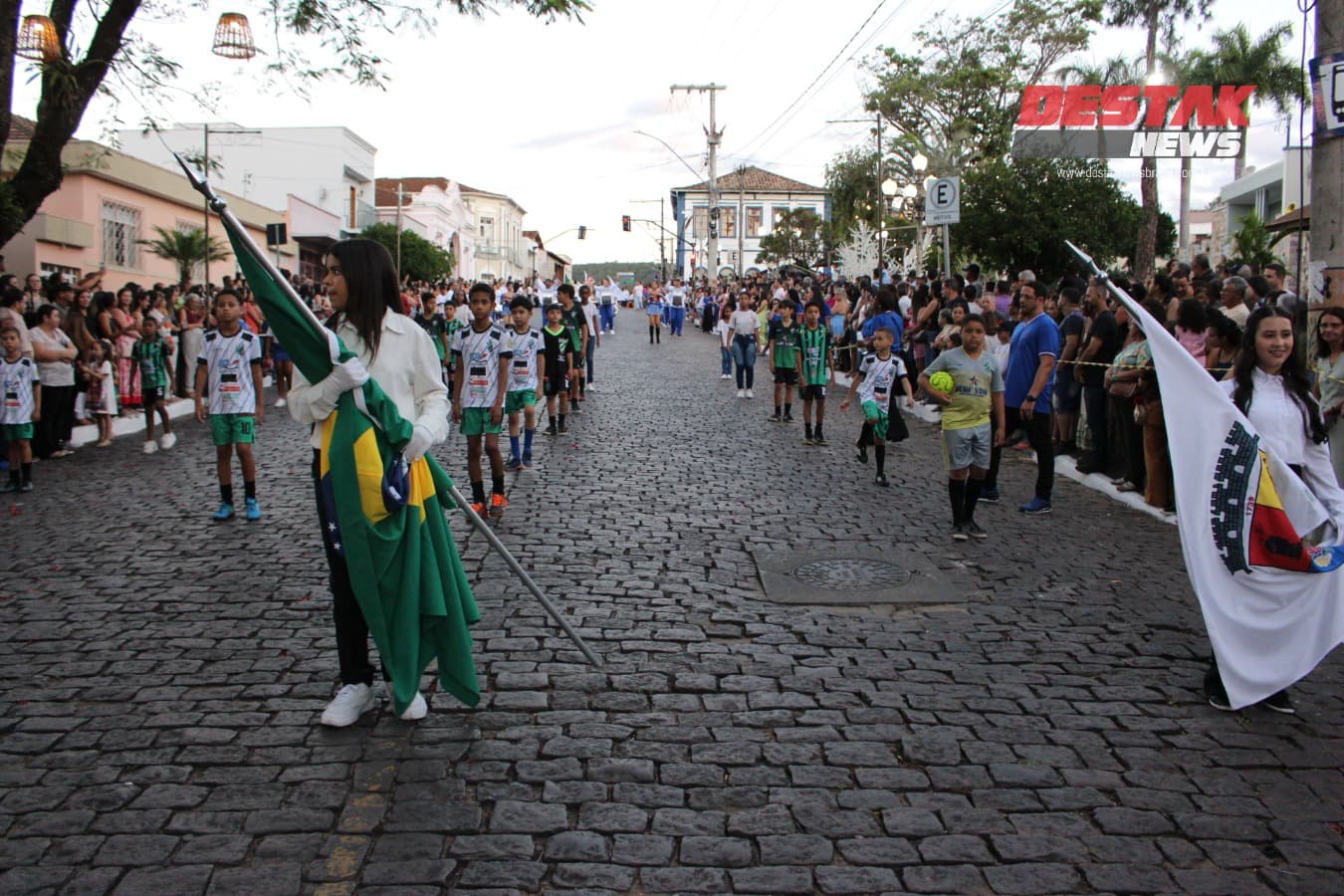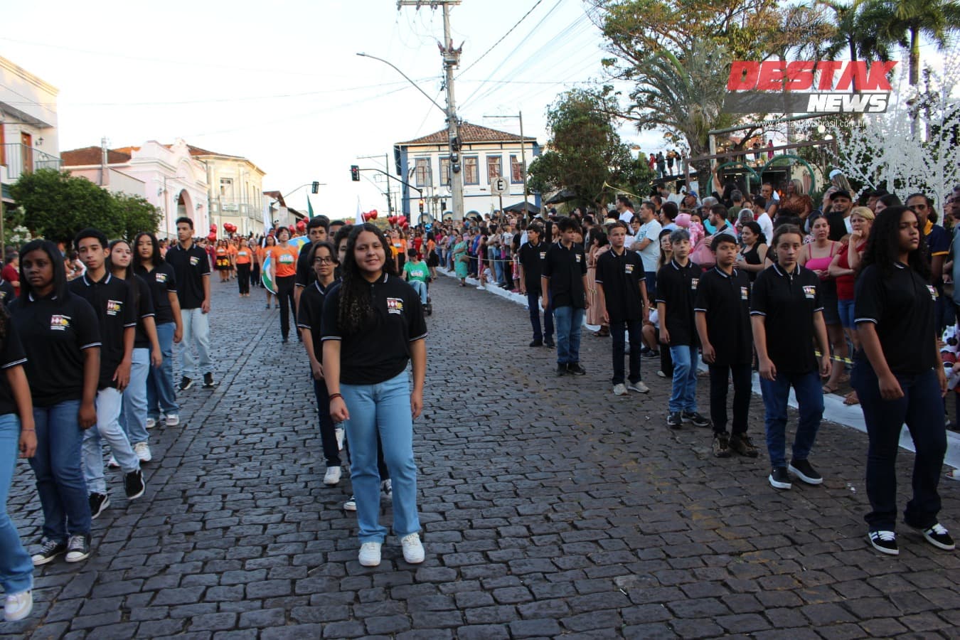 Instituições Educacionais: Escolas municipais e estaduais desfilaram com alunos e professores, representando o futuro da cidade e a valorização da educação.