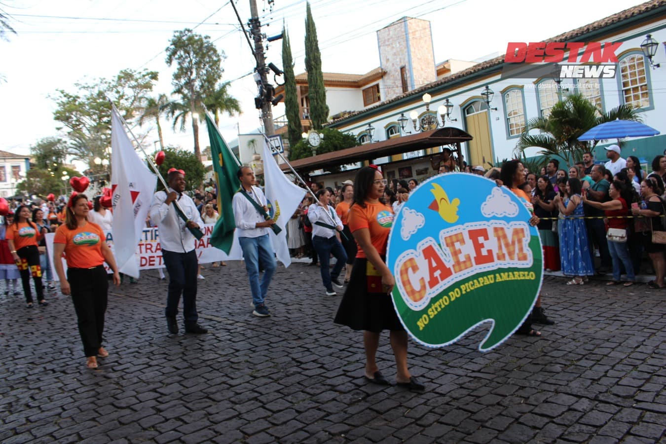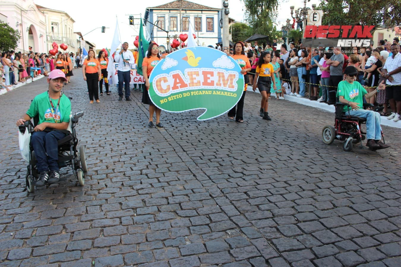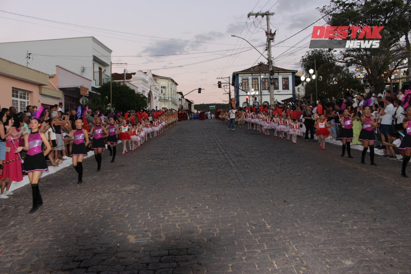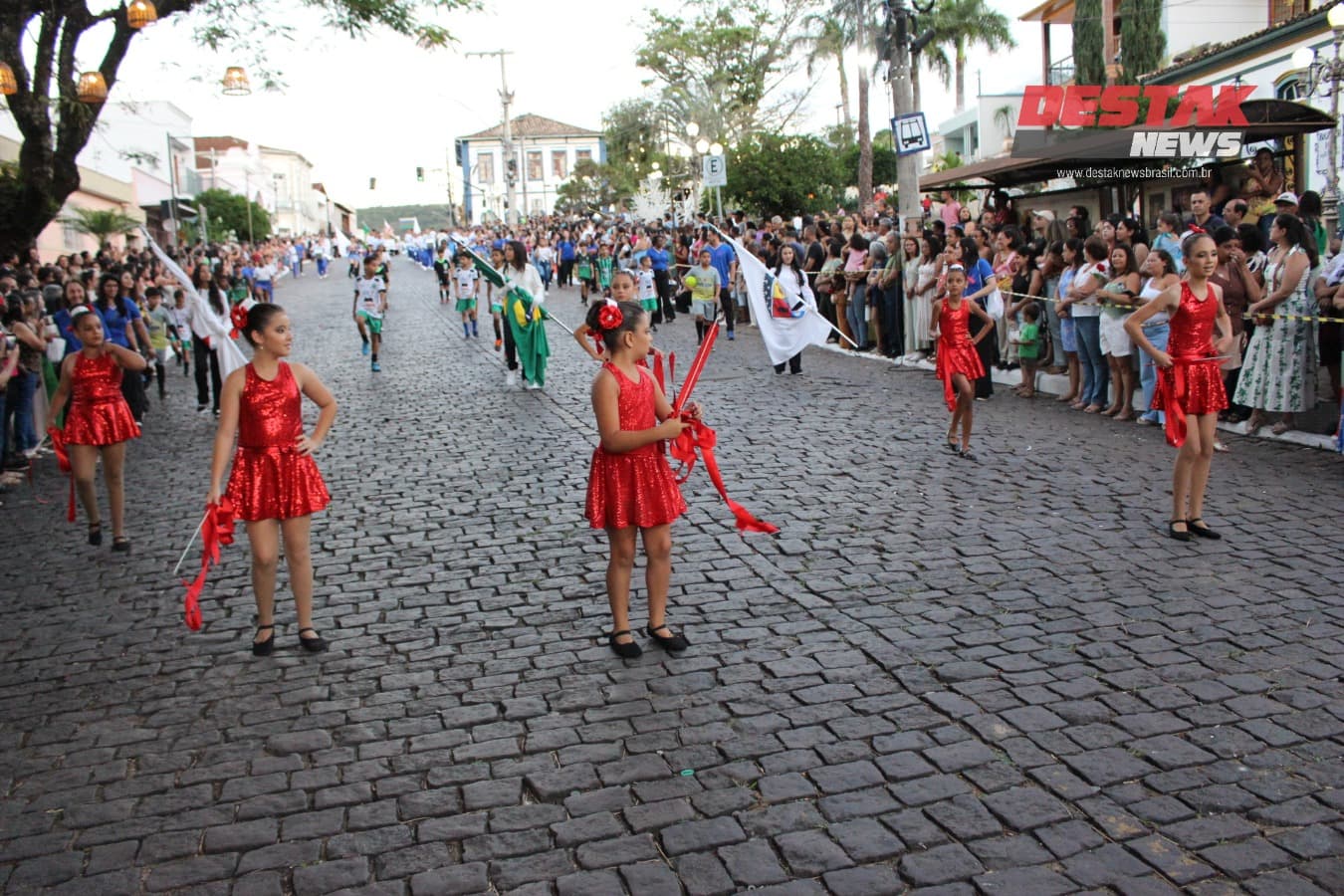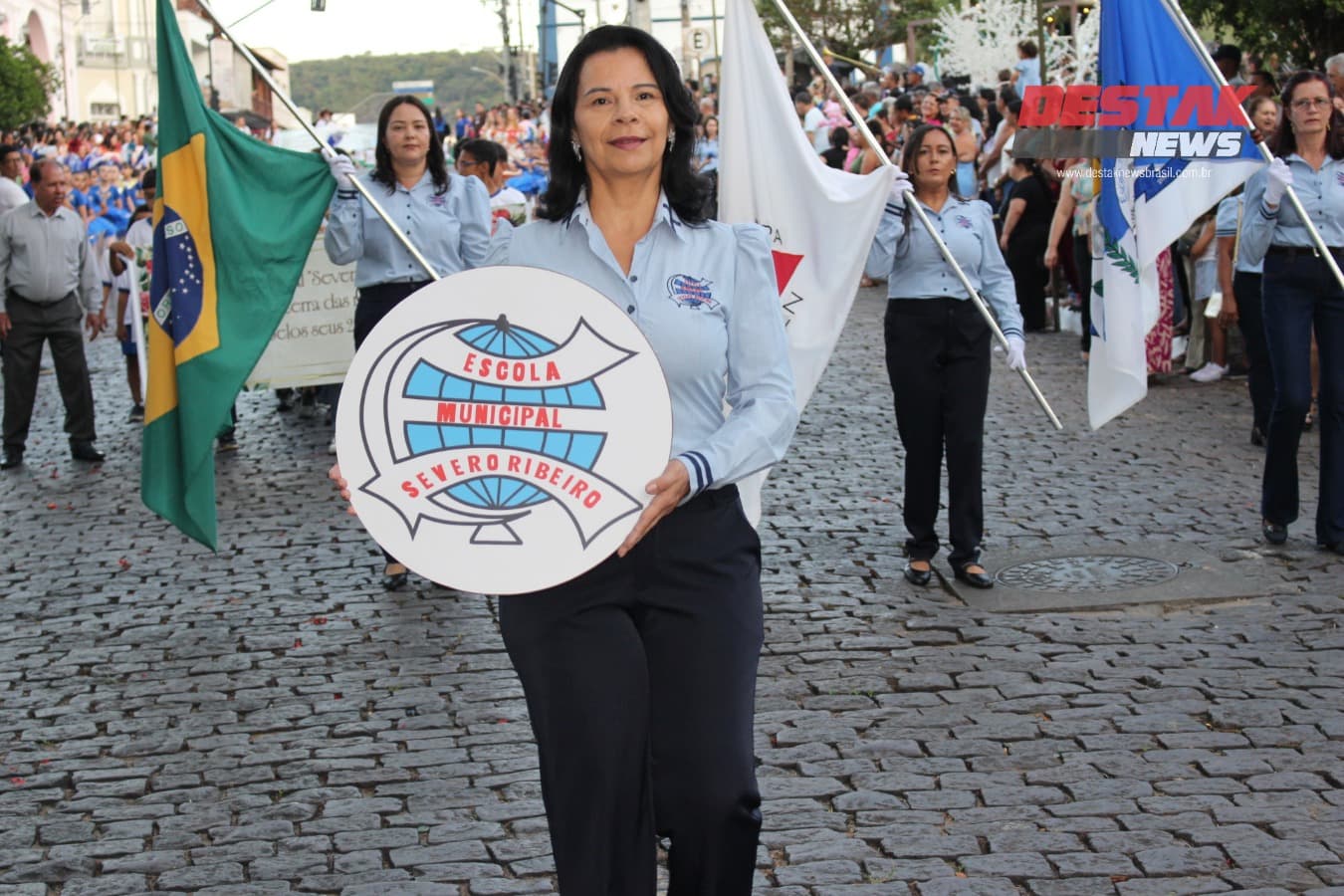 Instituições Educacionais: Escolas municipais e estaduais desfilaram com alunos e professores, representando o futuro da cidade e a valorização da educação.