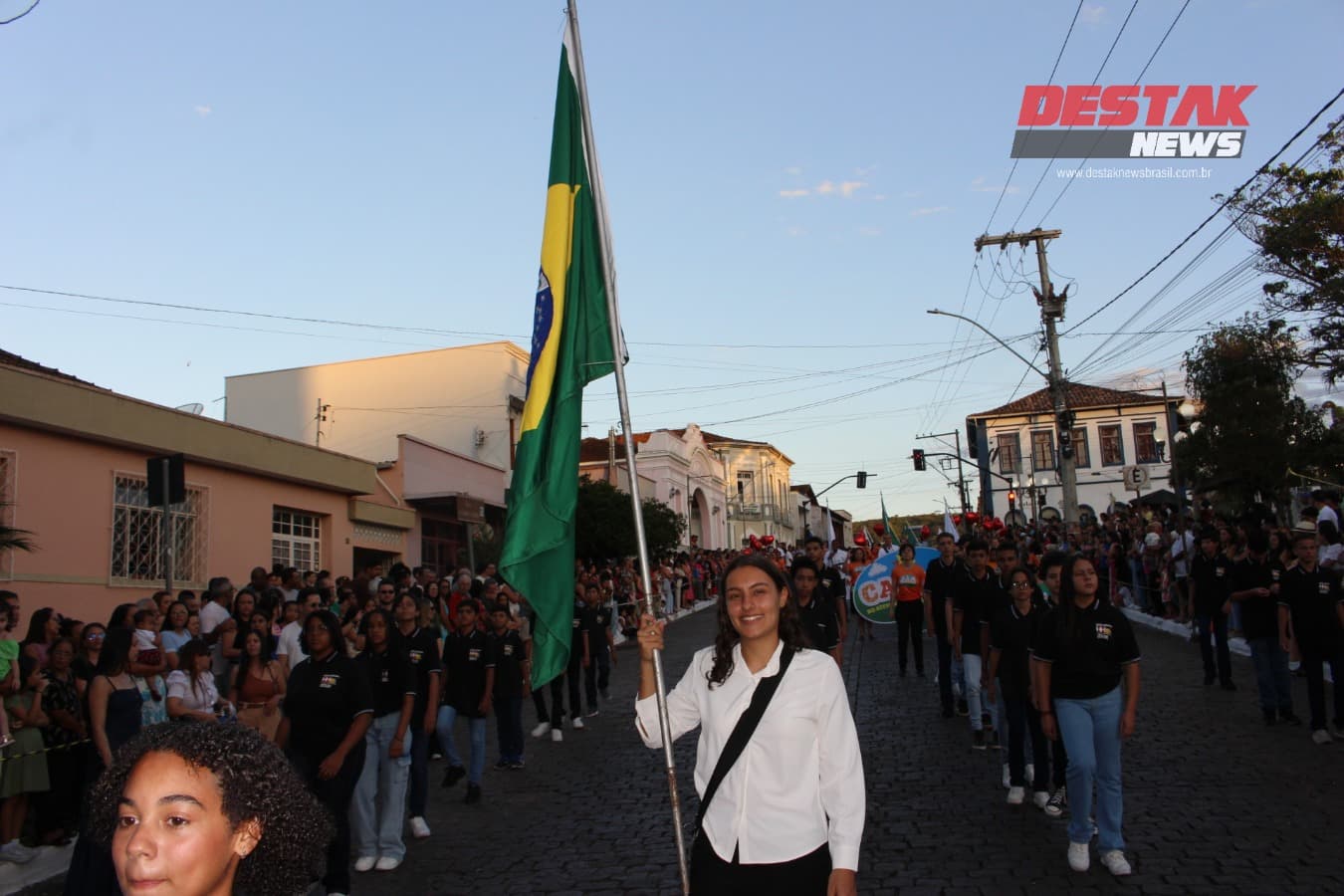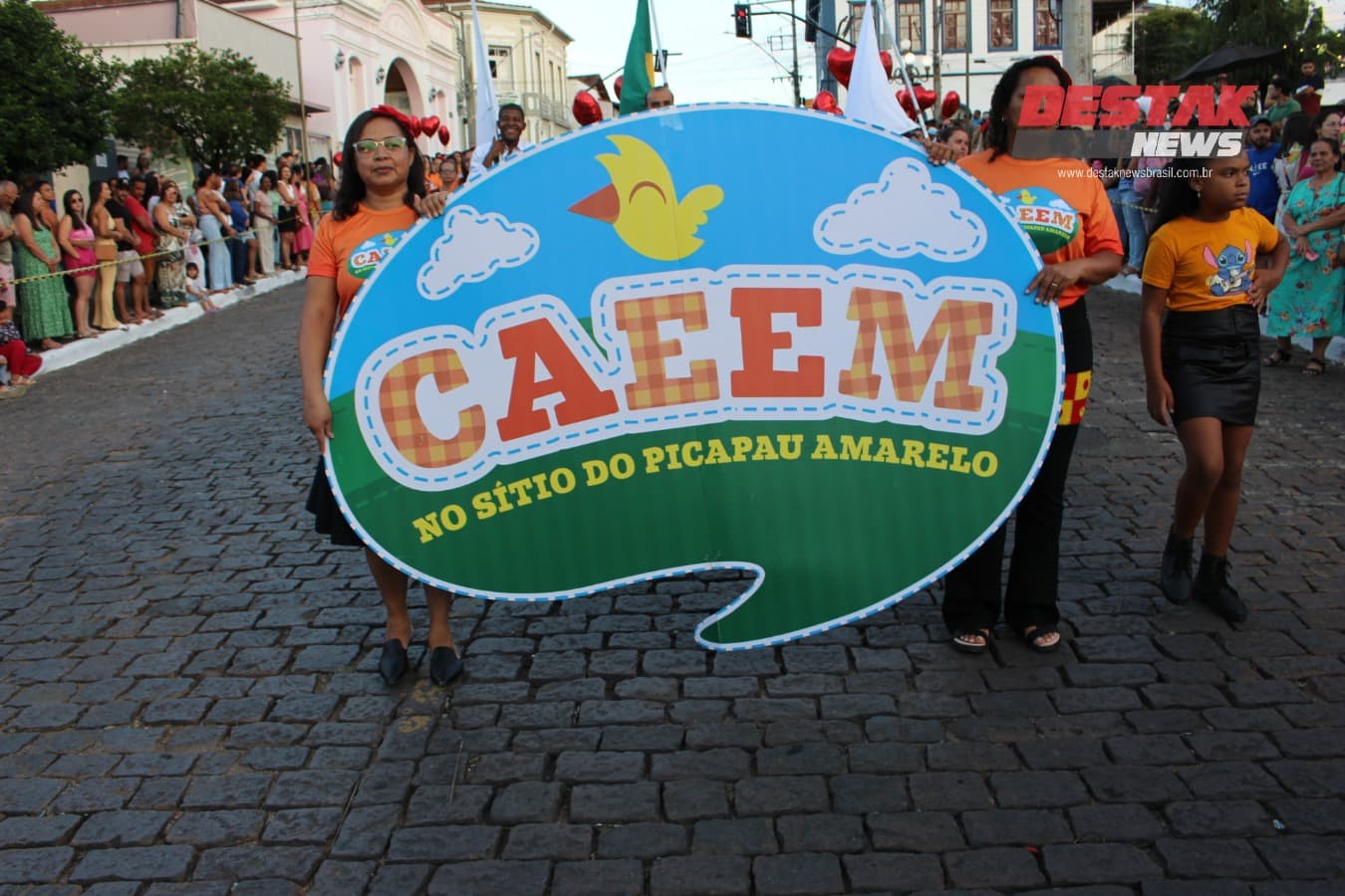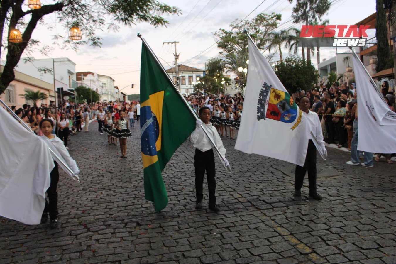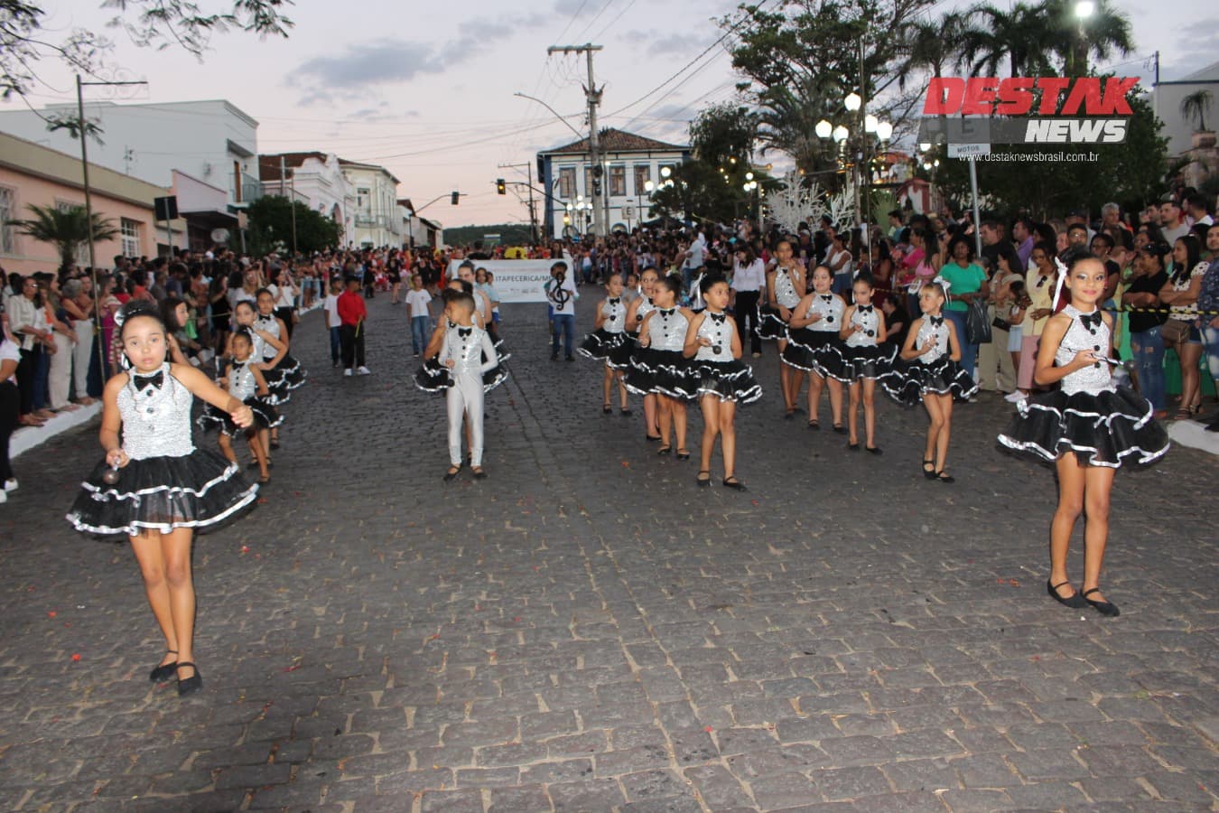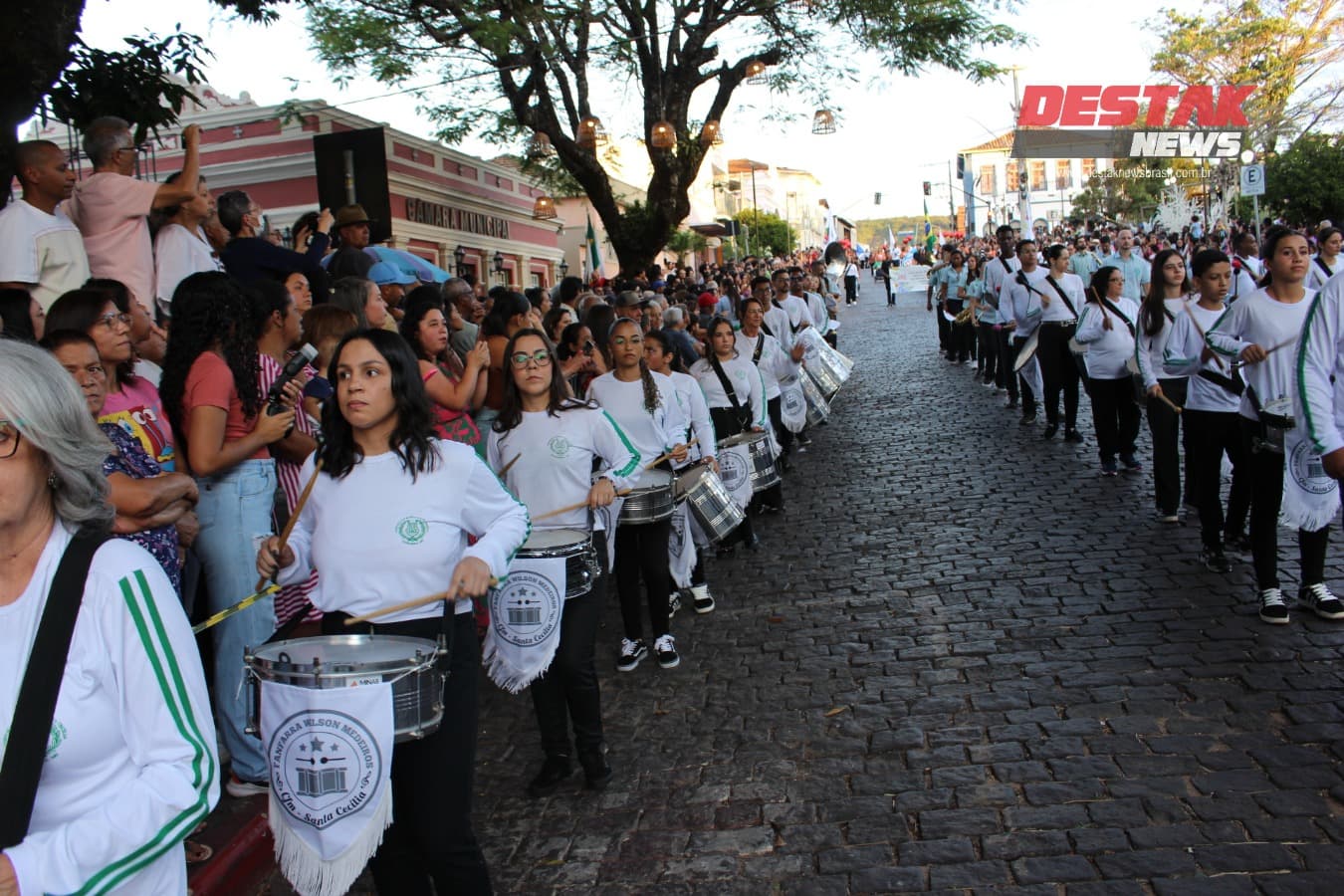Instituições Educacionais: Escolas municipais e estaduais desfilaram com alunos e professores, representando o futuro da cidade e a valorização da educação.