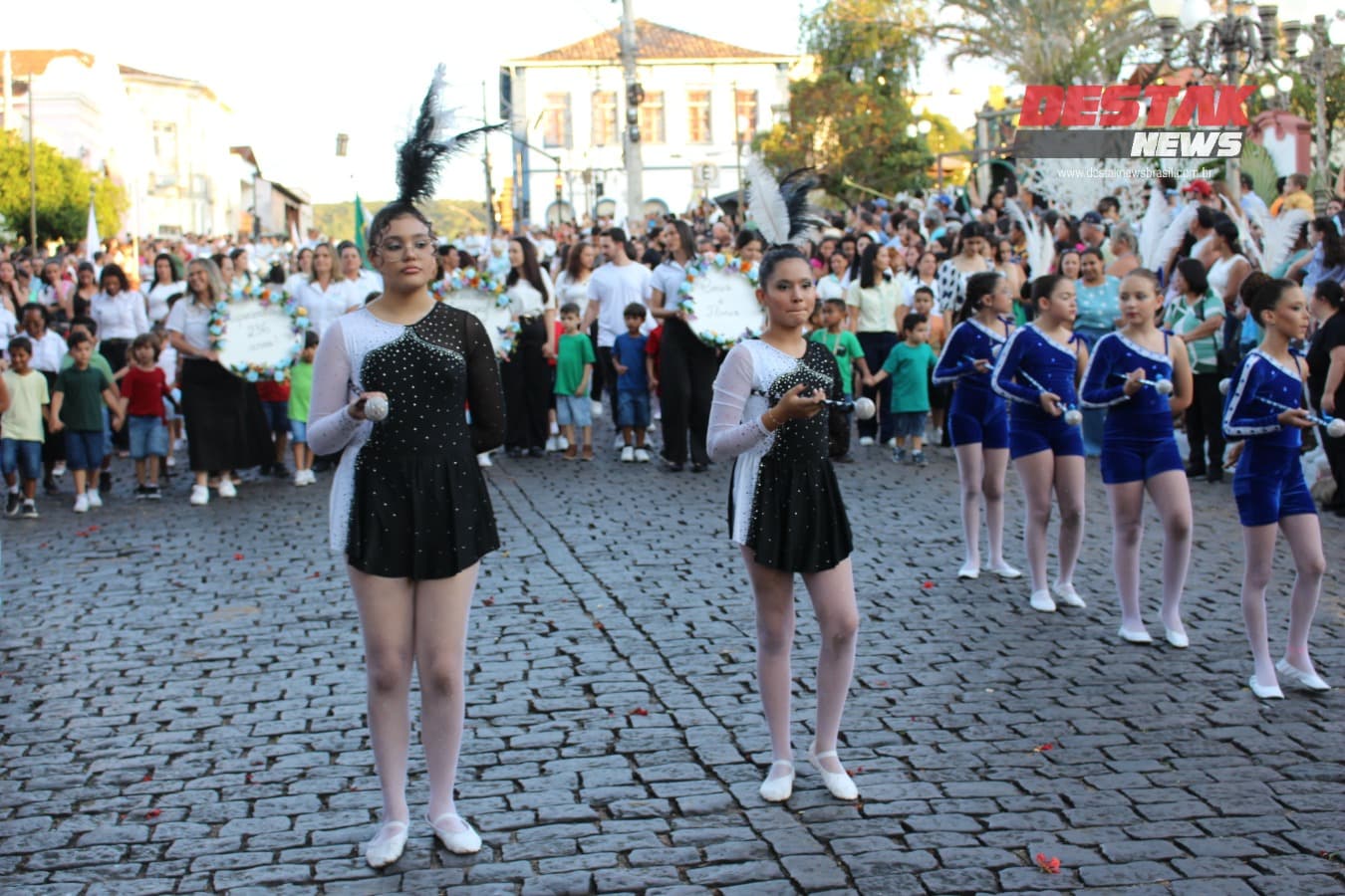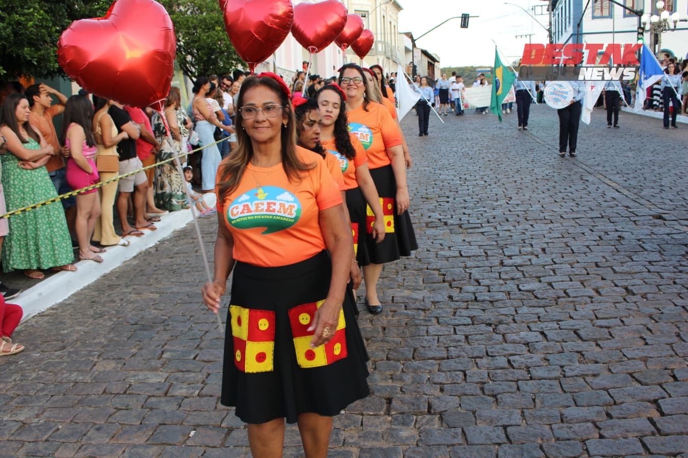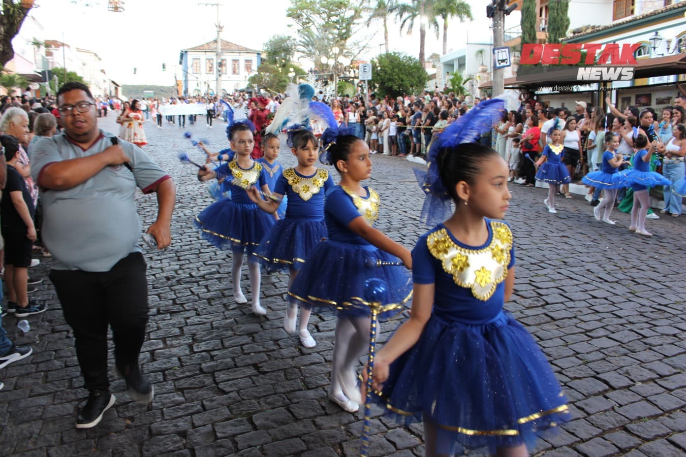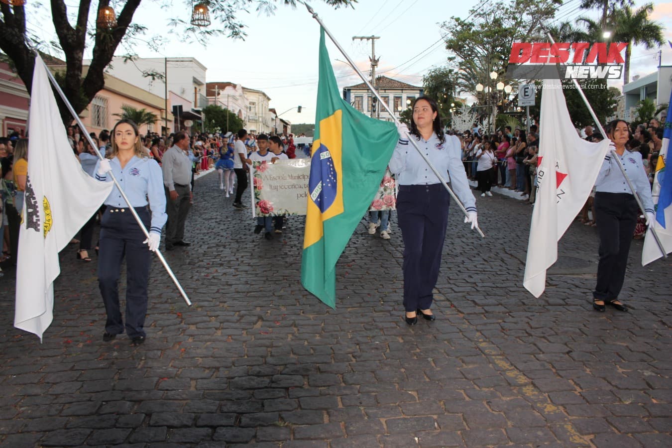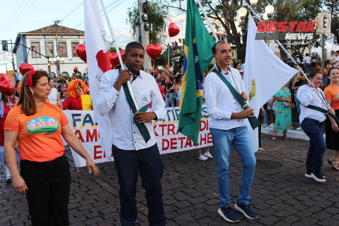 Instituições Educacionais: Escolas municipais e estaduais desfilaram com alunos e professores, representando o futuro da cidade e a valorização da educação.