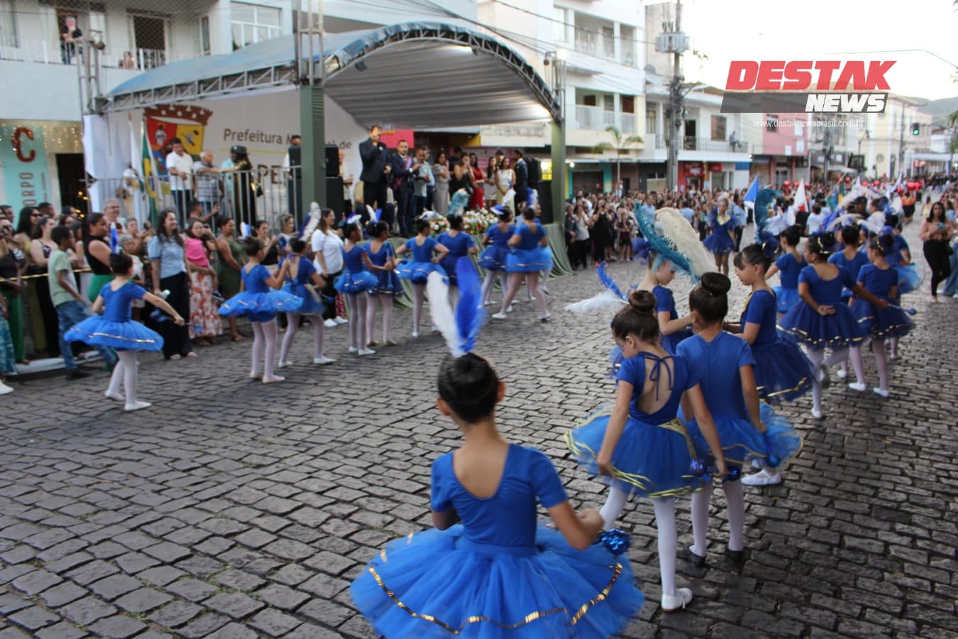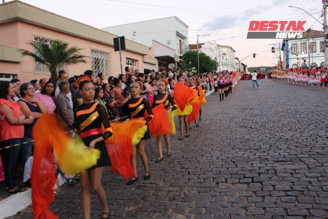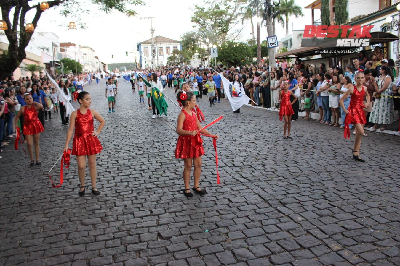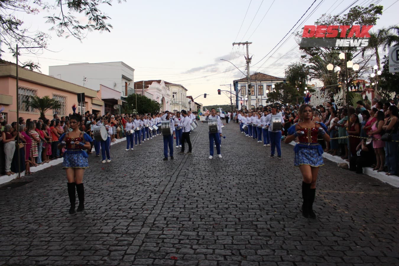 Instituições Educacionais: Escolas municipais e estaduais desfilaram com alunos e professores, representando o futuro da cidade e a valorização da educação.