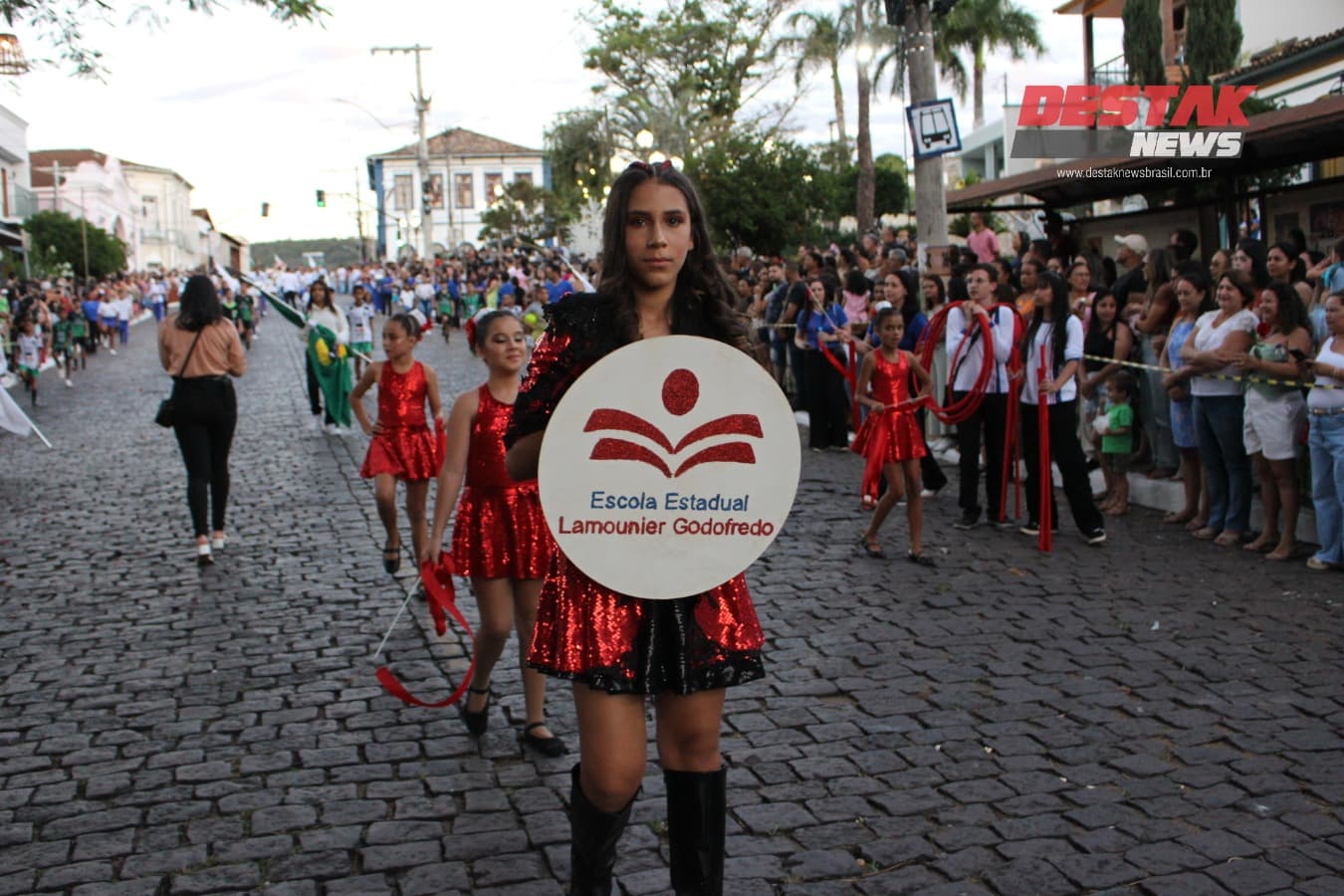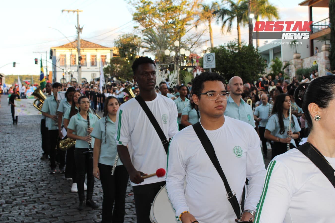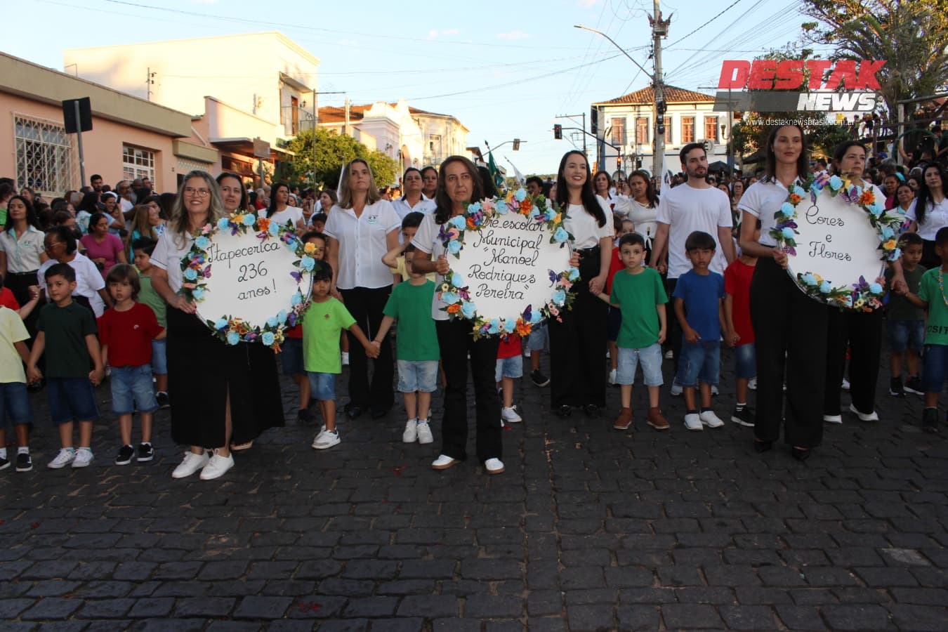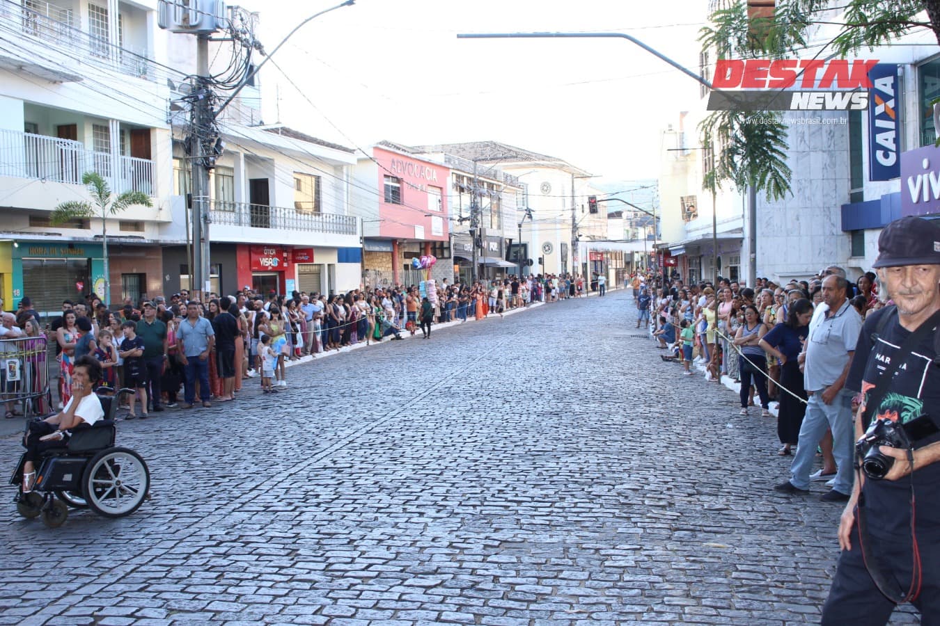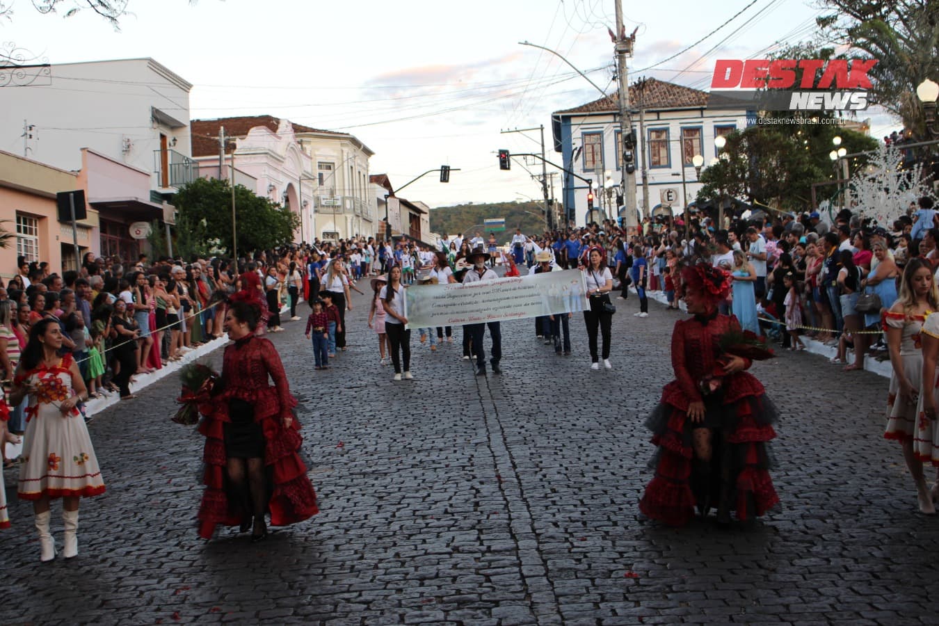 Instituições Educacionais: Escolas municipais e estaduais desfilaram com alunos e professores, representando o futuro da cidade e a valorização da educação.