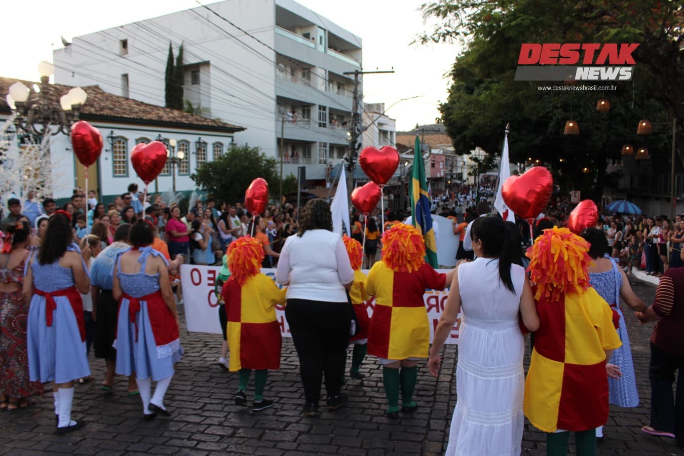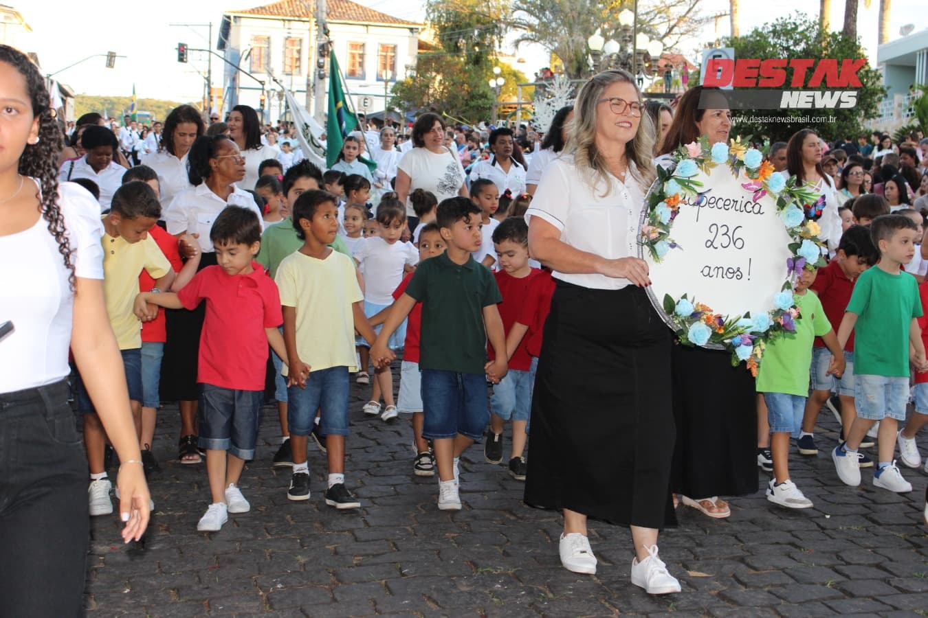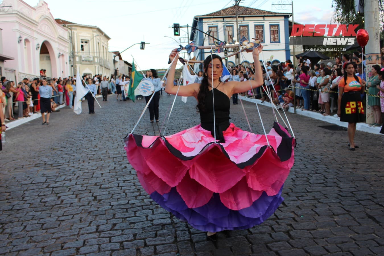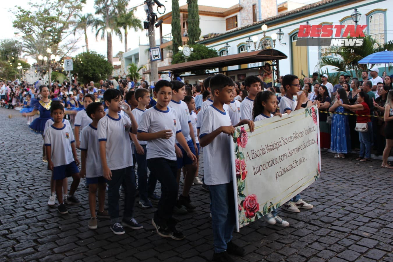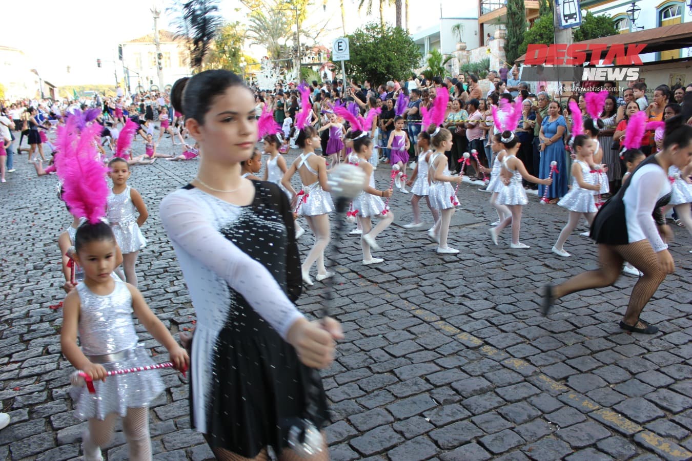 Instituições Educacionais: Escolas municipais e estaduais desfilaram com alunos e professores, representando o futuro da cidade e a valorização da educação.