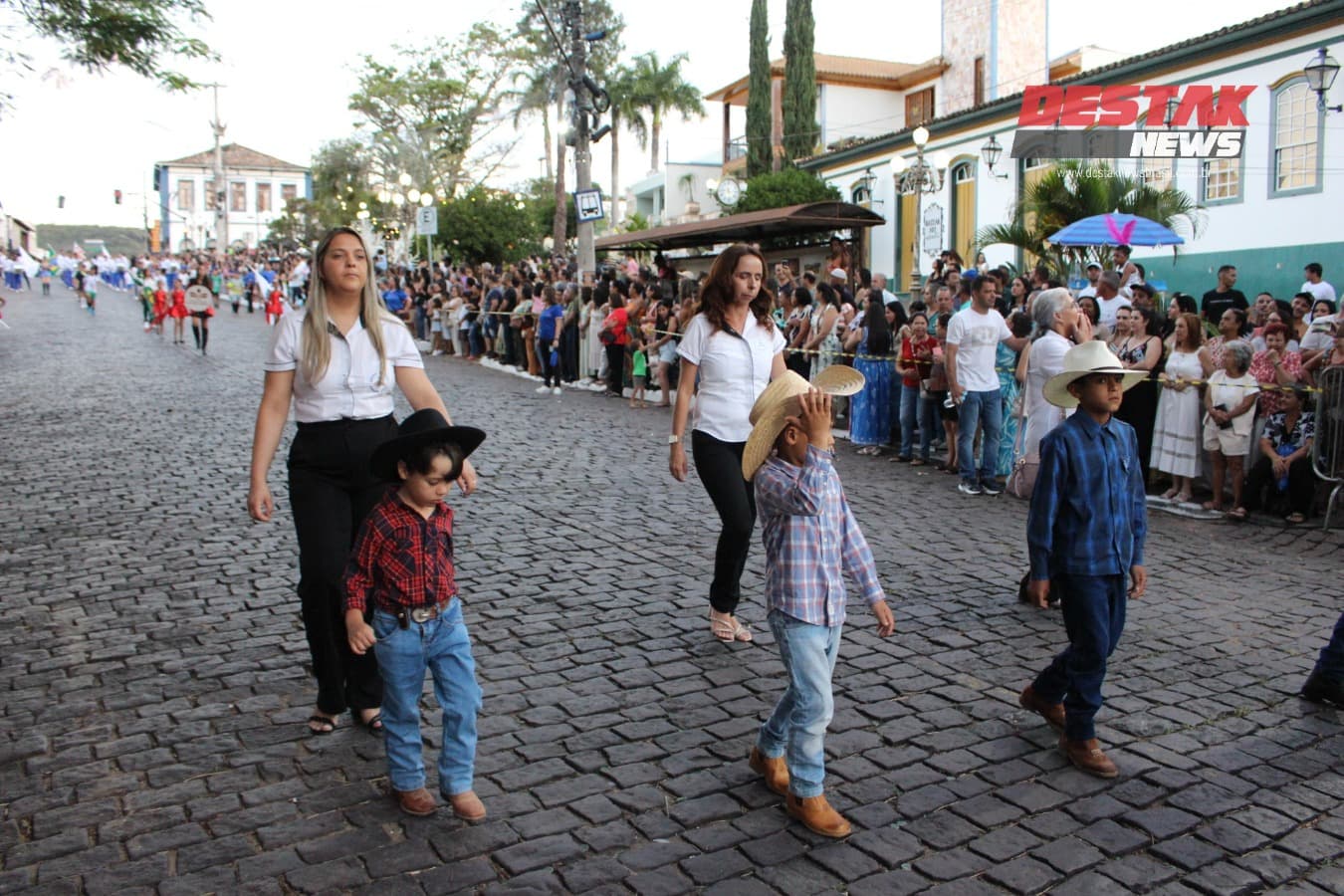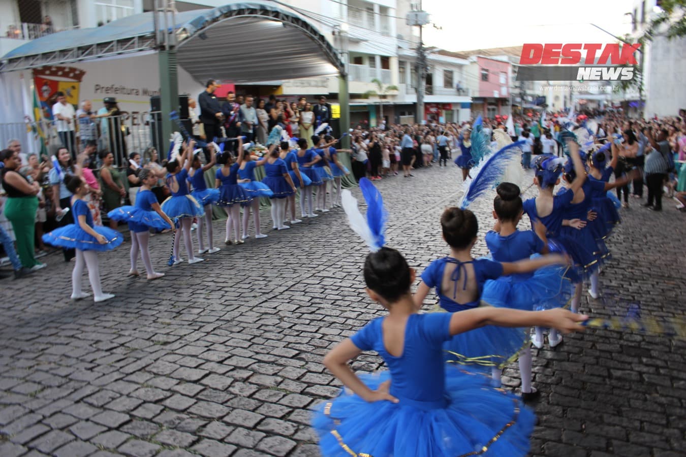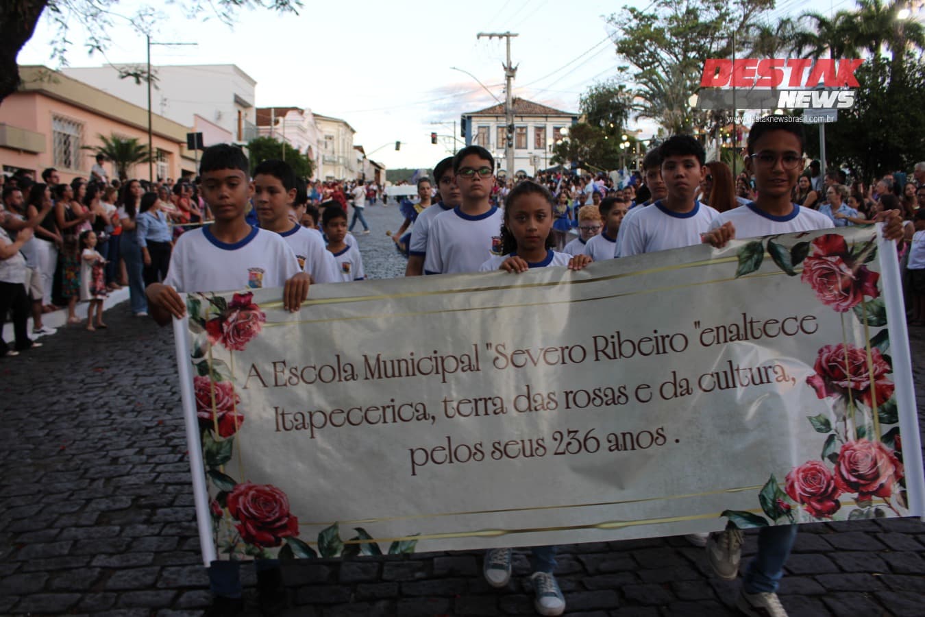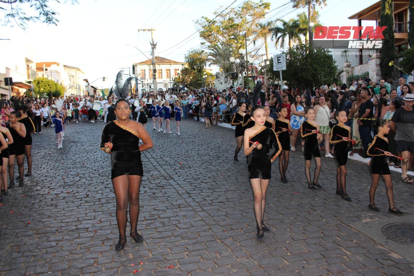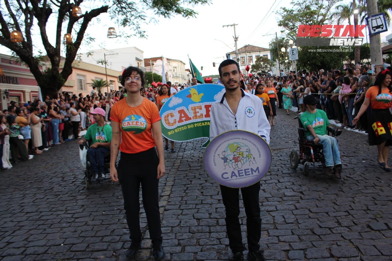 Instituições Educacionais: Escolas municipais e estaduais desfilaram com alunos e professores, representando o futuro da cidade e a valorização da educação.
