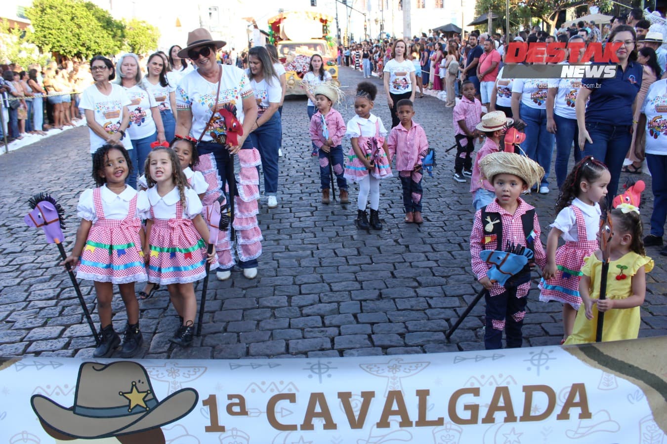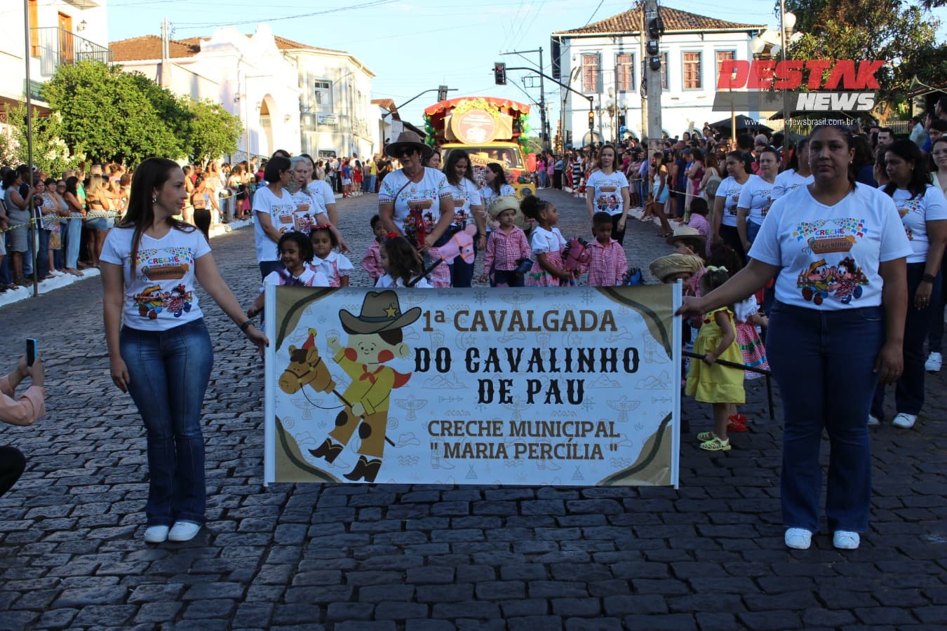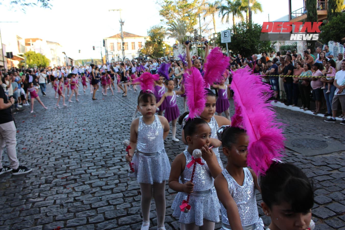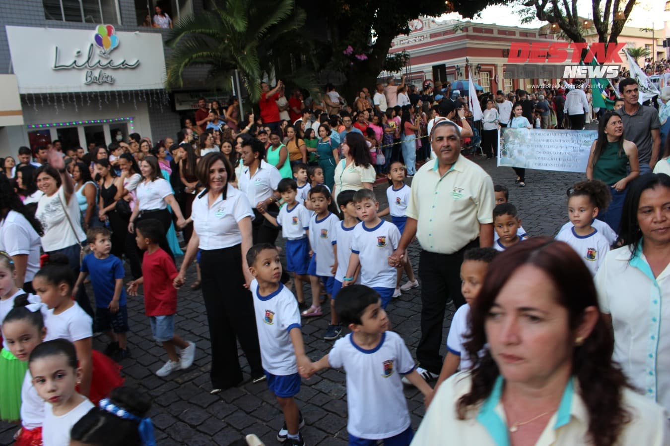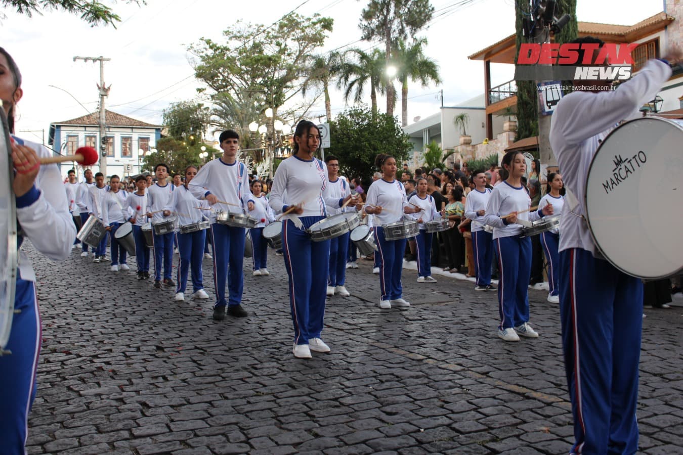 Instituições Educacionais: Escolas municipais e estaduais desfilaram com alunos e professores, representando o futuro da cidade e a valorização da educação.