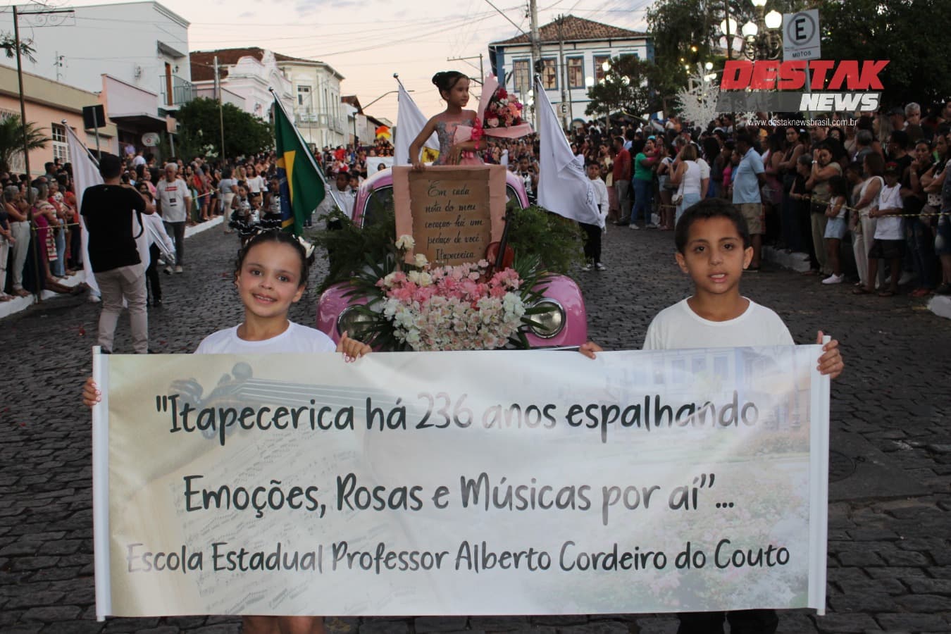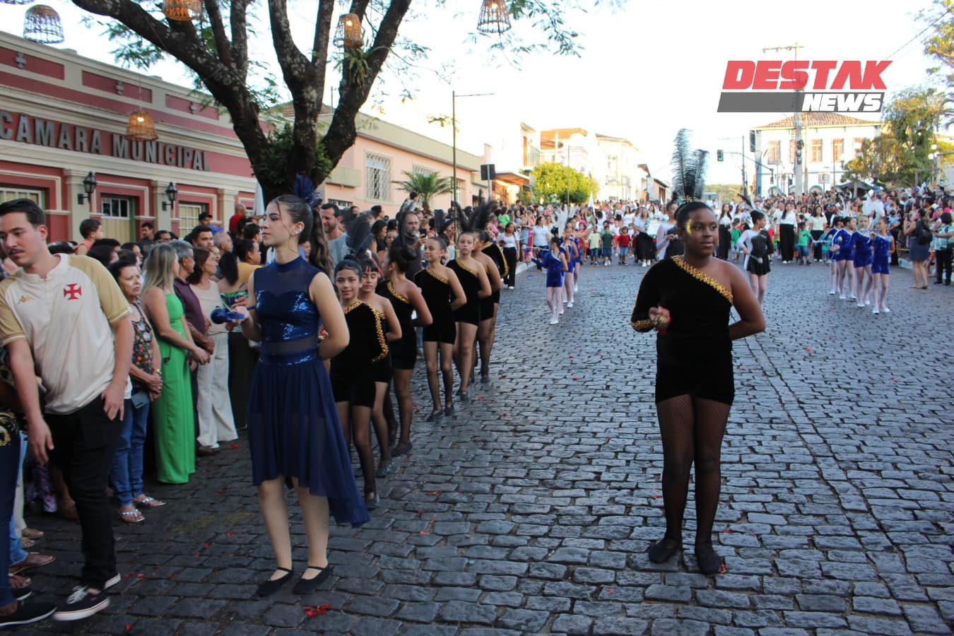 O desfile cívico transformou a principal via do centro em um palco de civismo e manifestações culturais. A celebração da história de Itapecerica foi expressa pela participação diversificada e colorida de:
