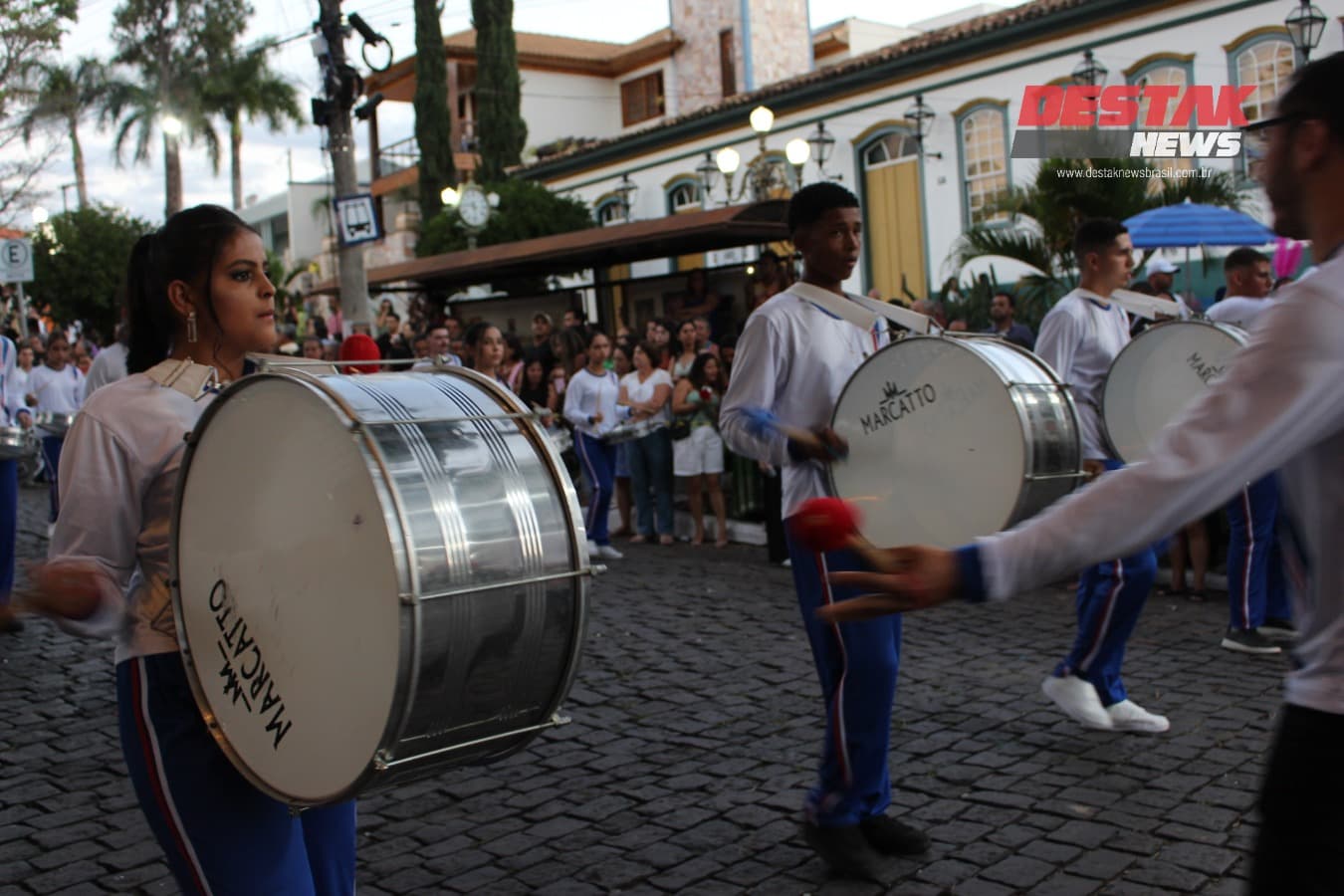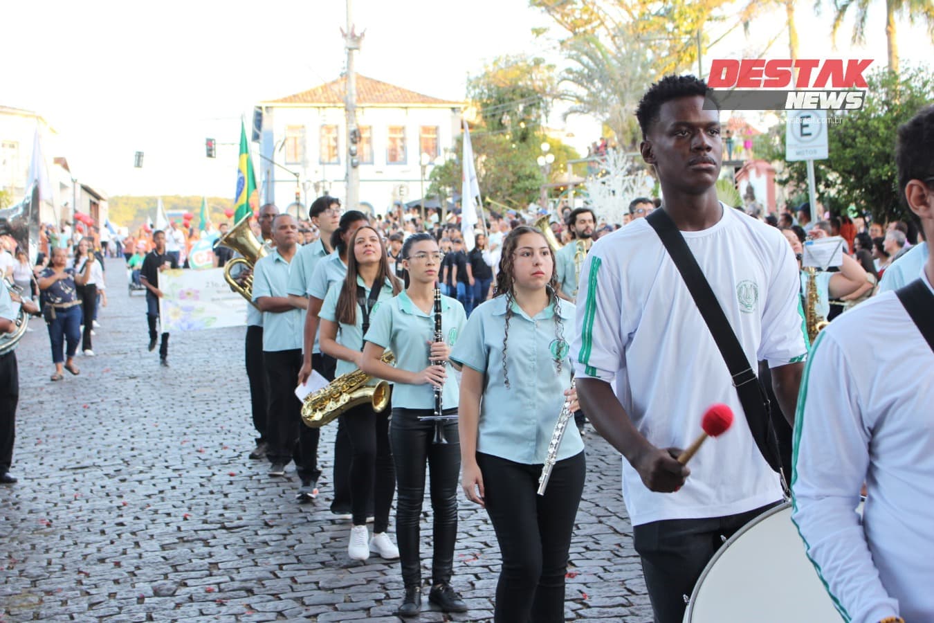 A vibração do desfile foi ampliada pela musicalidade. Além das fanfarras, a Banda de Música do 7º Batalhão da Polícia Militar de Bom Despacho realizou uma belíssima apresentação. O concerto aconteceu em frente ao prédio da Prefeitura.