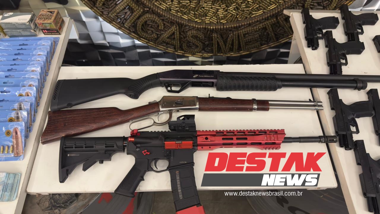 Armas de Alto Calibre: 1 fuzil 5,56, 1 espingarda calibre 12 e 1 carabina .38.