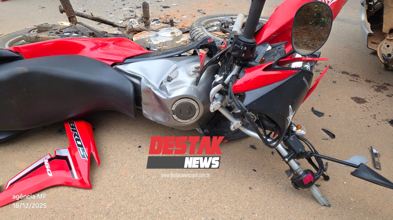 O impacto da batida foi violento. O condutor da motocicleta, um jovem de 17 anos, ficou gravemente ferido: