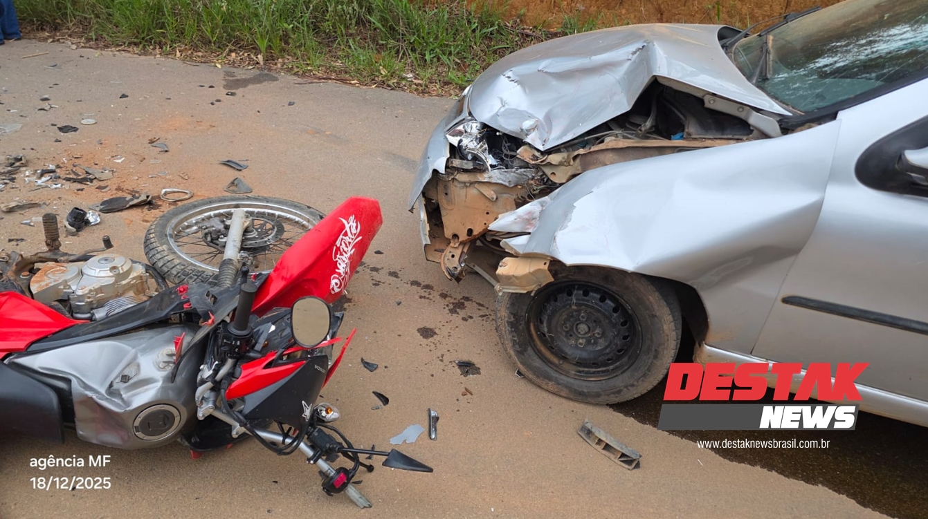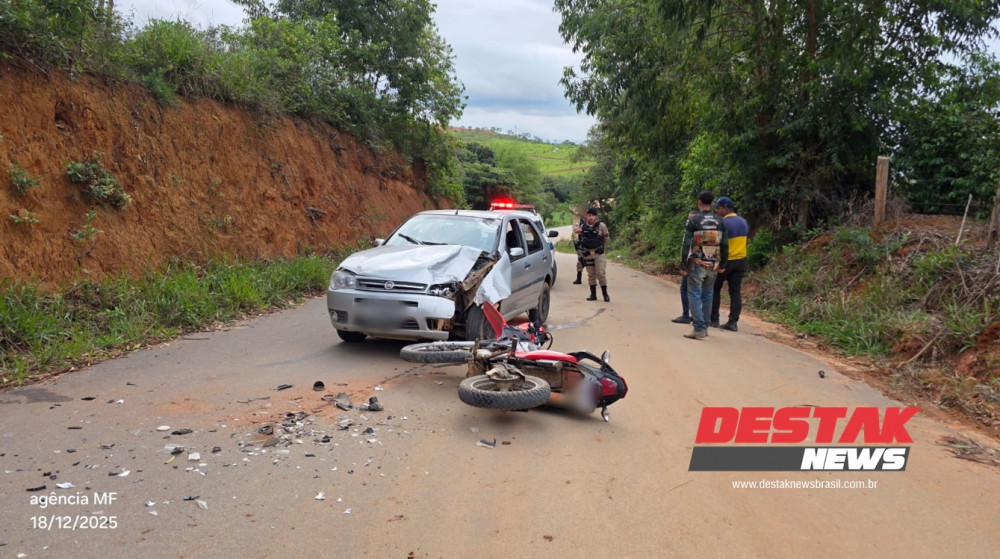 Colisão frontal entre carro e moto deixa dois adolescentes gravemente feridos na zona rural de Camacho (MG)