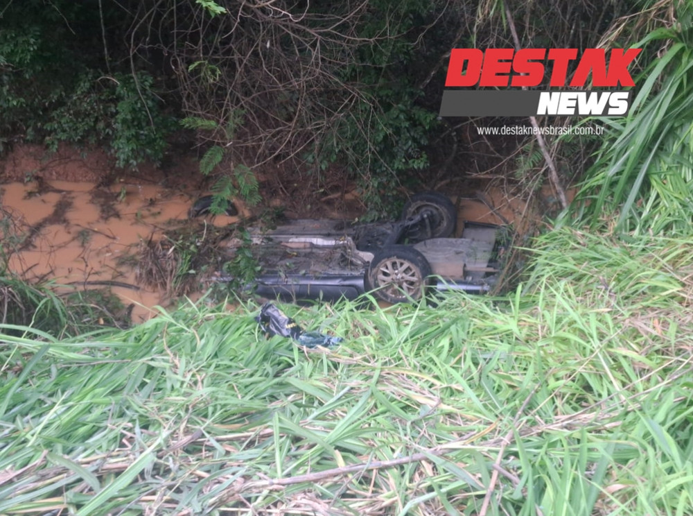 O veículo atravessou a pista oposta, colidiu contra um barranco e capotou, parando dentro de um córrego às margens da rodovia. O carro ficou com as rodas voltadas para cima e a cabine totalmente submersa, o que impediu qualquer chance de saída das vítimas.