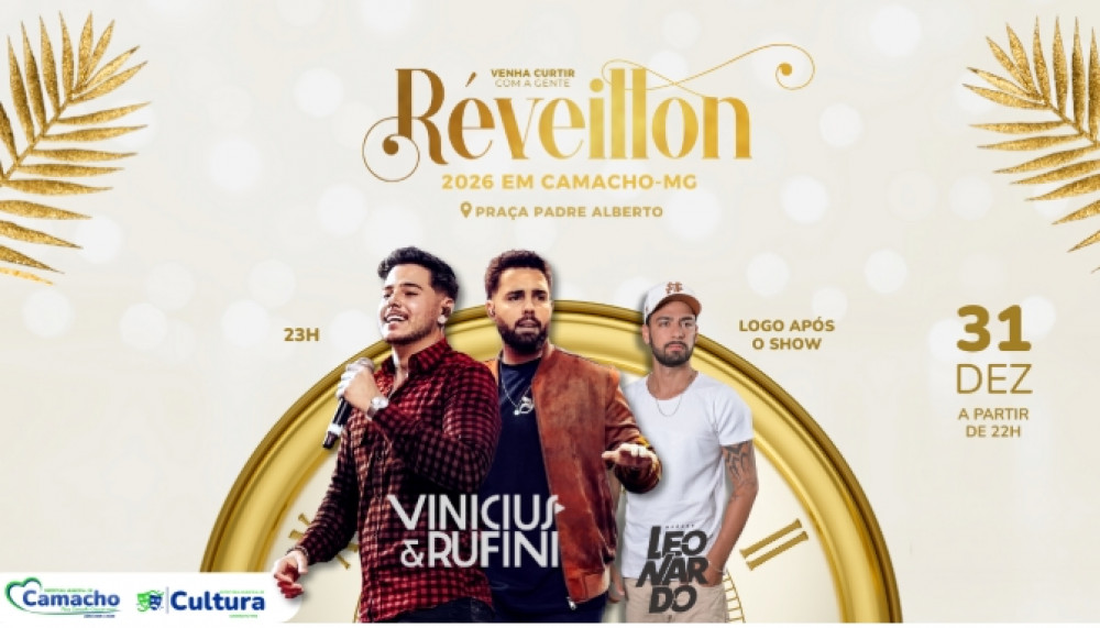 A cidade de Camacho (MG) já se prepara para receber 2026 em grande estilo. A Prefeitura Municipal, sob coordenação da Secretaria Municipal de Cultura, anunciou a programação oficial do Réveillon 2026, que acontecerá na tradicional Praça Padre Alberto. O evento, que é gratuito e aberto a toda a comunidade, terá início às 22h do dia 31 de dezembro.