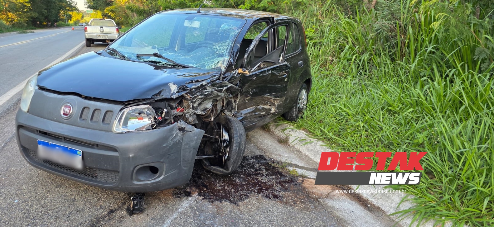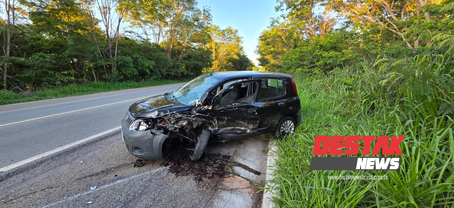 O Fiat/Uno, com placas de São Gonçalo do Pará (MG), era conduzido por um jovem de 22 anos que trafegava no sentido oposto e não conseguiu evitar o impacto.