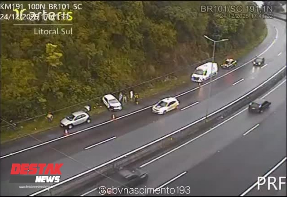 A véspera de Natal (24) foi marcada por um grave acidente no km 191 da BR-101, em Biguaçu, na Grande Florianópolis. Dois agentes da Polícia Rodoviária Federal (PRF) e dois civis foram violentamente atingidos por um veículo enquanto realizavam o atendimento de uma ocorrência anterior no acostamento da rodovia.