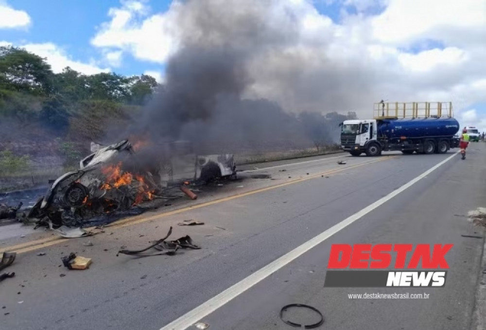 Um veículo modelo Fiat Doblò, que seguia no sentido norte, teria invadido a contramão, atingindo frontalmente uma caminhonete que trafegava no sentido oposto. Com o impacto violento, ambos os veículos saíram da pista e foram tomados por chamas quase que instantaneamente.