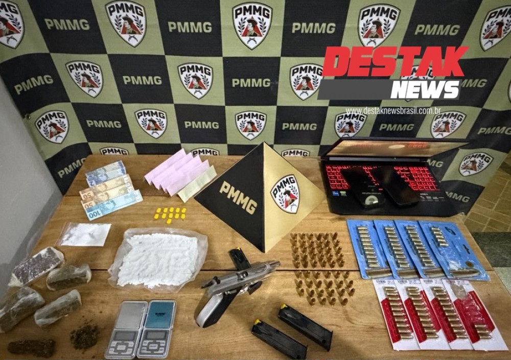 BAMBUÍ – Uma ação estratégica da Polícia Militar de Bambuí (MG), realizada na noite desta segunda-feira (29), resultou na desarticulação de um ponto de distribuição de entorpecentes e na prisão de dois homens. A operação, que teve início após denúncias anônimas, culminou na apreensão de cocaína, maconha, drogas sintéticas, uma arma de calibre restrito e farta munição.