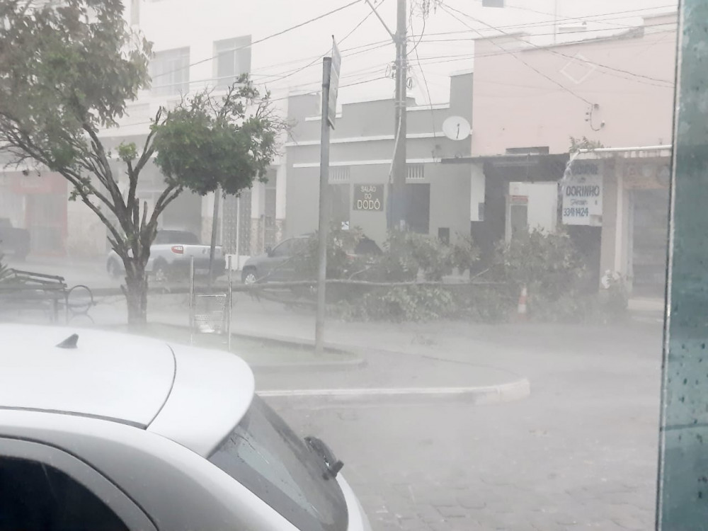 O grande volume de água superou a capacidade do sistema de drenagem pluvial, transformando vias públicas em verdadeiras corredeiras. Além dos alagamentos, a força da enxurrada causou a queda de árvores em pontos estratégicos, bloqueando passagens e exigindo atenção redobrada dos motoristas e pedestres.