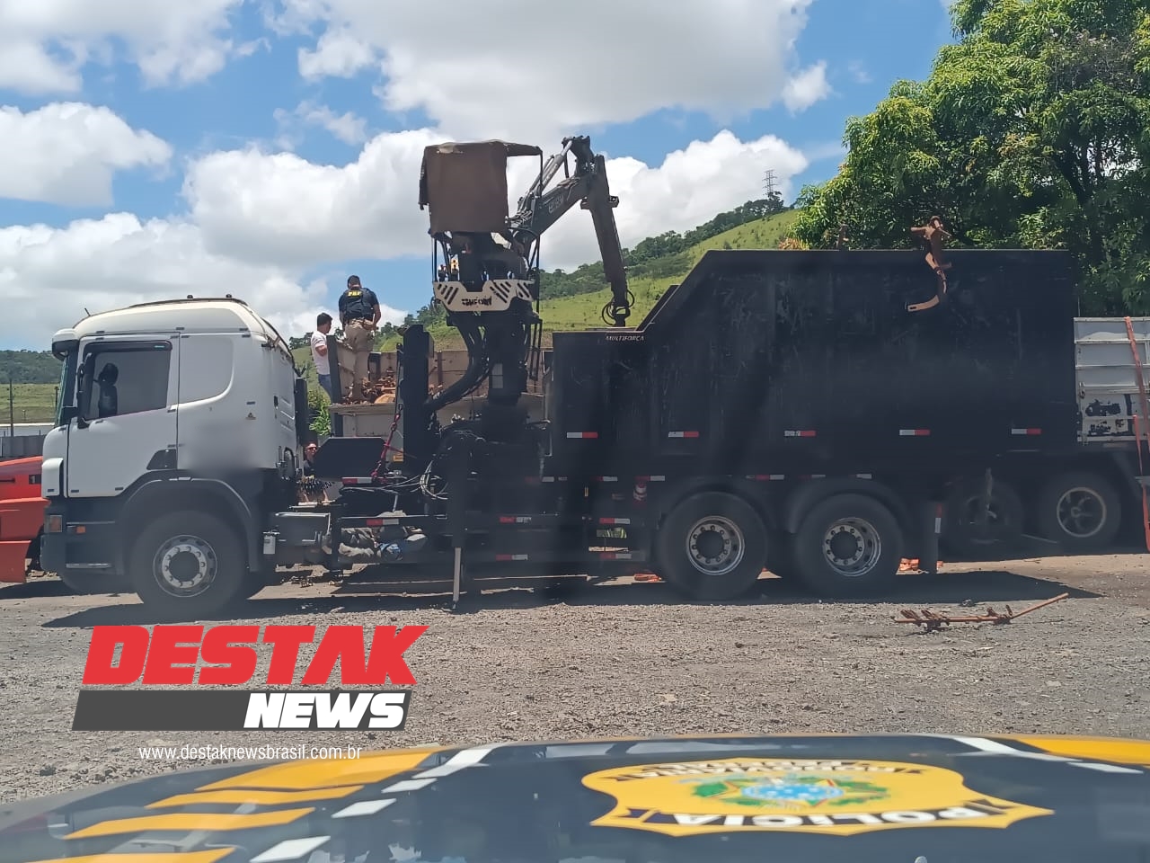 Para acessar o carregamento ilegal, foi necessária uma logística pesada. Com o auxílio de guindastes, os policiais realizaram o transbordo da sucata, revelando sacos ocultos no assoalho do veículo. Após a pesagem oficial, os números confirmaram a magnitude do prejuízo ao tráfico: