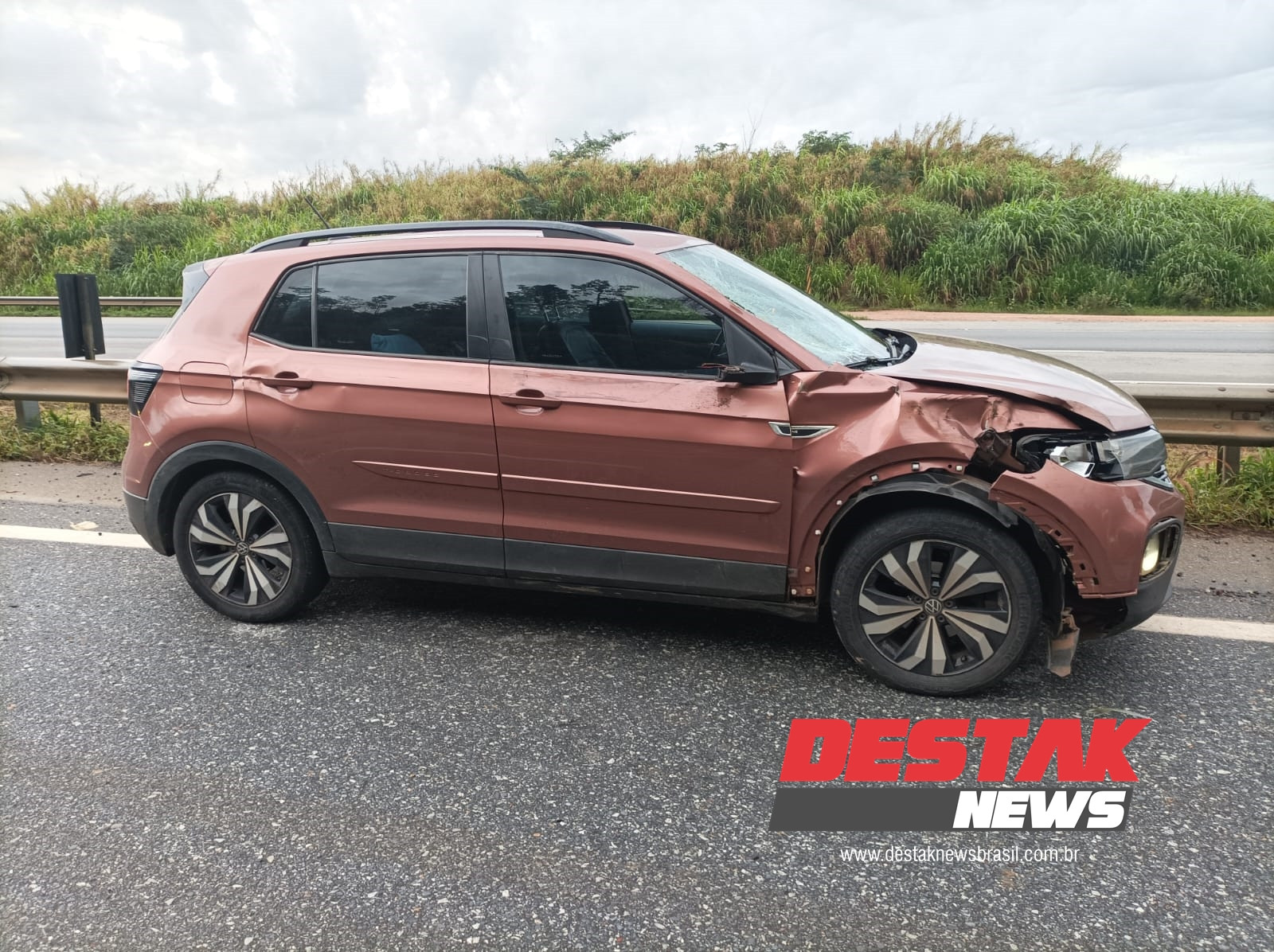 Um veículo Volkswagen T-Cross, conduzido por um homem de 45 anos que trafegava no mesmo sentido, não conseguiu desviar a tempo e colidiu frontalmente com um dos animais que invadiu a pista. Apesar do susto e dos danos materiais no veículo, o condutor e os demais ocupantes do T-Cross saíram ilesos.