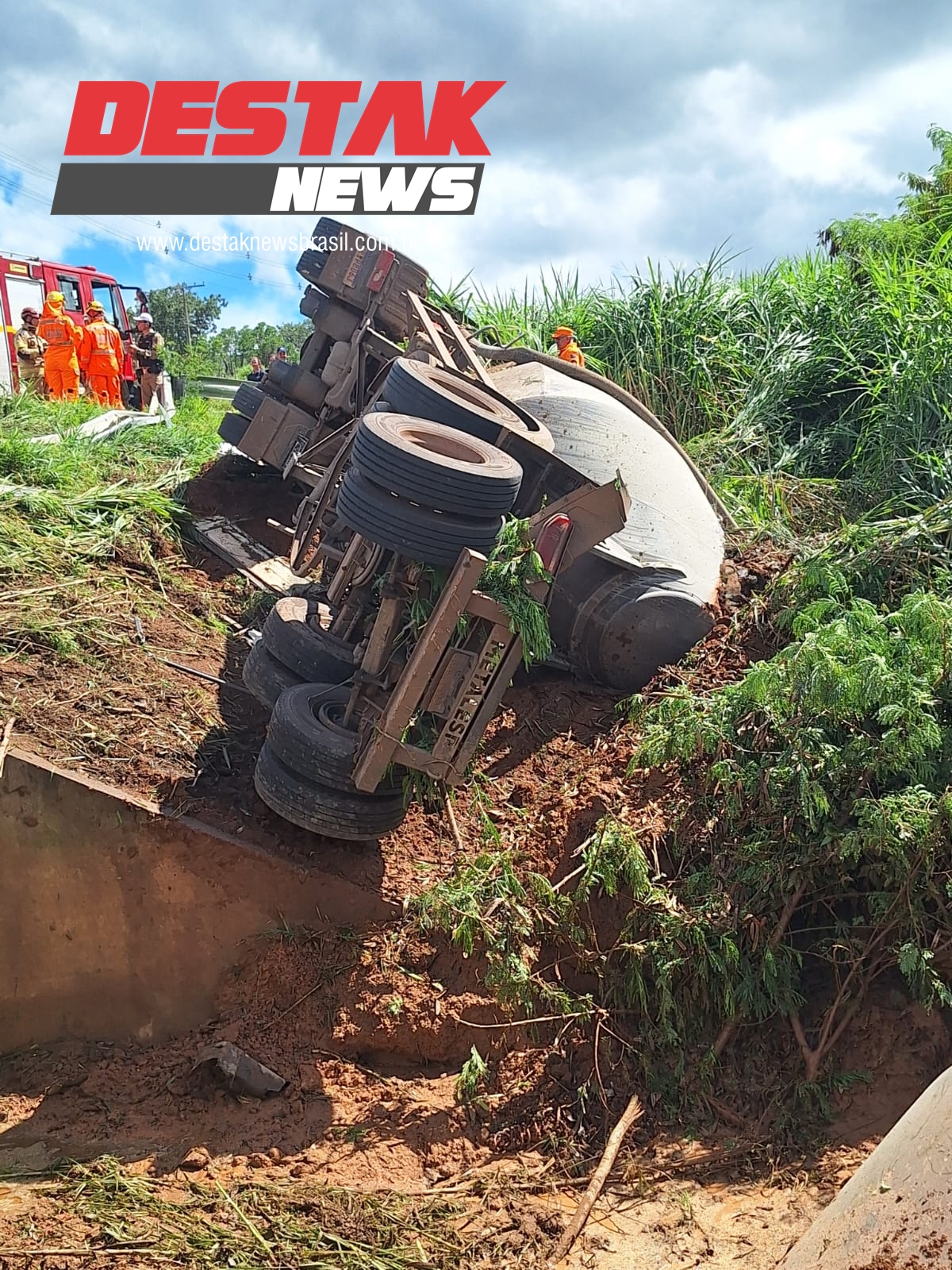 De acordo com informações da Polícia Militar Rodoviária (PMRv), o veículo envolvido era um caminhão-trator Scania R450, que tracionava dois semirreboques do tipo silo/pote (comumente utilizados para o transporte de materiais sólidos a granel, como cimento ou ração).