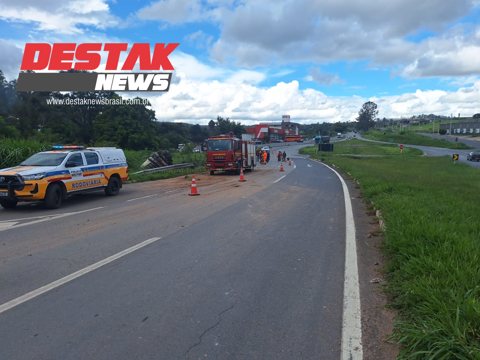 O condutor seguia no sentido Divinópolis para Formiga. Ao atingir a altura do km 200, logo após realizar uma curva, o motorista perdeu o controle direcional do conjunto. Desgovernado, o veículo tombou e parou às margens da rodovia.