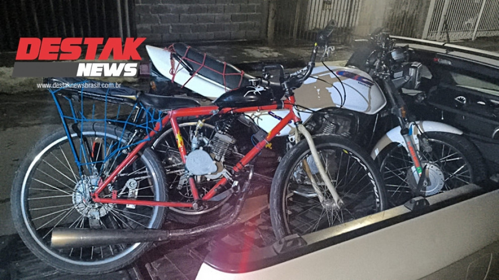 Enquanto os militares do GEPMOR processavam a ocorrência da motocicleta, um segundo fato chamou a atenção da equipe no mesmo local. Outro menor, também de 16 anos, foi flagrado realizando manobras perigosas em uma bicicleta motorizada de fabricação artesanal. O veículo, que carece de itens básicos de segurança e registro, foi imediatamente interceptado.