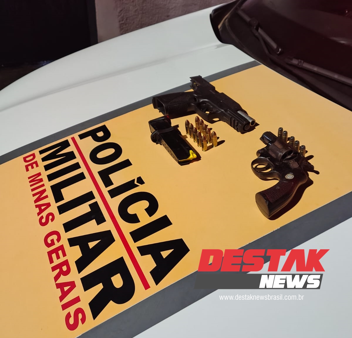 Ambos os armamentos estavam em situação irregular, configurando, a princípio, o crime de porte ilegal de arma de fogo.