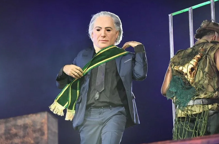 A Estética do "Palhaço": Na Comissão de Frente, um ator representando Jair Bolsonaro apareceu vestido de palhaço enquanto ostentava a faixa presidencial. O clímax da apresentação mostrou o personagem preso, utilizando uma tornozeleira eletrônica danificada — uma referência direta às investigações judiciais que cercam o ex-mandatário.