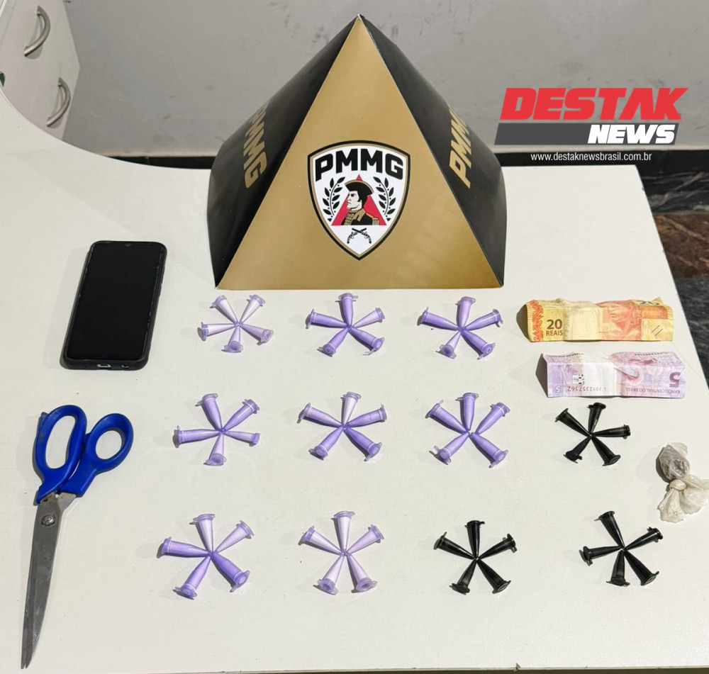 Ao se aproximarem do imóvel, os militares foram alertados pelo forte odor de maconha. Pela janela da residência, a equipe visualizou uma cena clara de tráfico: o homem manipulava substâncias e acondicionava cocaína em pinos plásticos — o formato clássico de venda no varejo do crime.