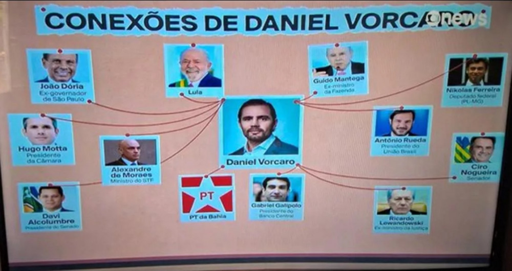 Na última sexta-feira, a emissora apresentou um slide que pretendia ilustrar a rede de relacionamentos de Daniel Vorcaro. No entanto, a forma como os nomes foram dispostos sugeria uma proximidade direta ou irregular entre o banqueiro e o presidente Lula, sem apresentar provas ou o contexto necessário.