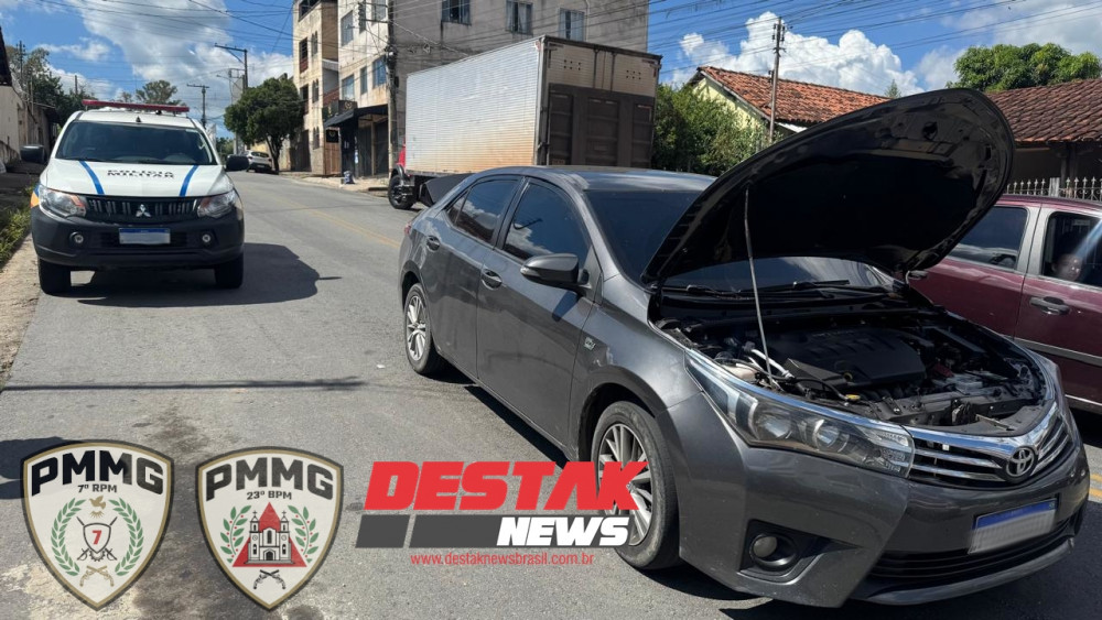 Após a tentativa de furto frustrada em São Sebastião do Oeste, equipes do 23º Batalhão da Polícia Militar iniciaram um intenso rastreamento na região. Com base em informações de inteligência e relatos de testemunhas, os militares identificaram que os autores fugiram em um Toyota Corolla cinza.
