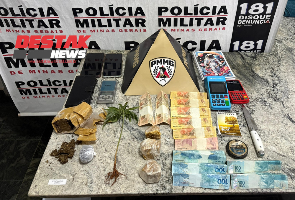 ITAPECERICA (MG) – Uma operação bem-sucedida da Polícia Militar de Minas Gerais resultou na prisão de um homem e uma mulher, ambos de 35 anos, na noite desta quinta-feira (02). A ação, que ocorreu no bairro Jardim Alvorada, em Itapecerica e culminou na apreensão de drogas, dinheiro e itens que comprovam a logística do tráfico na região.