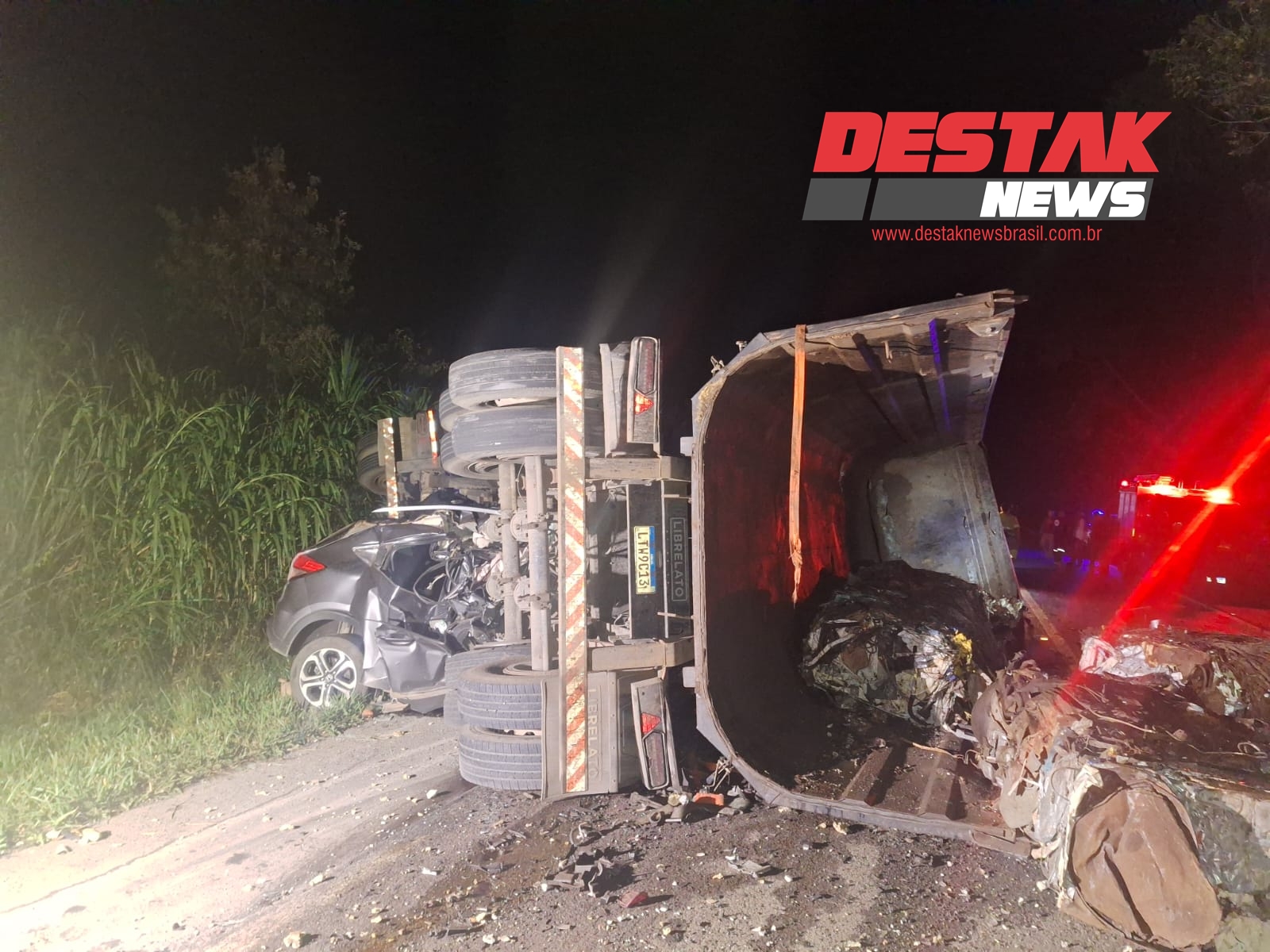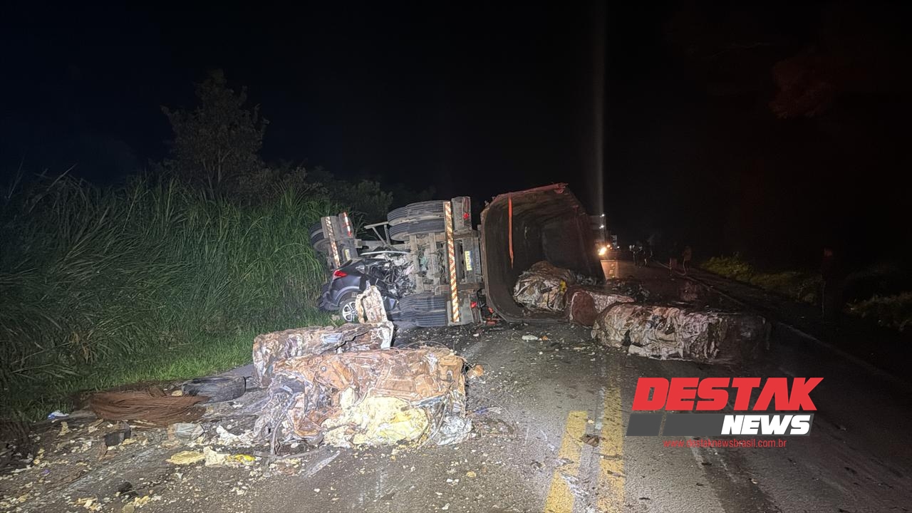 Um grave acidente envolvendo um rodotrem carregado com sucatas e um veículo de passeio resultou na morte de uma mulher de 41 anos na noite desta quarta-feira (8). A colisão ocorreu por volta das 19h04, no km 172 da rodovia MG-050, em território pertencente ao município de Pedra do Indaiá (MG).