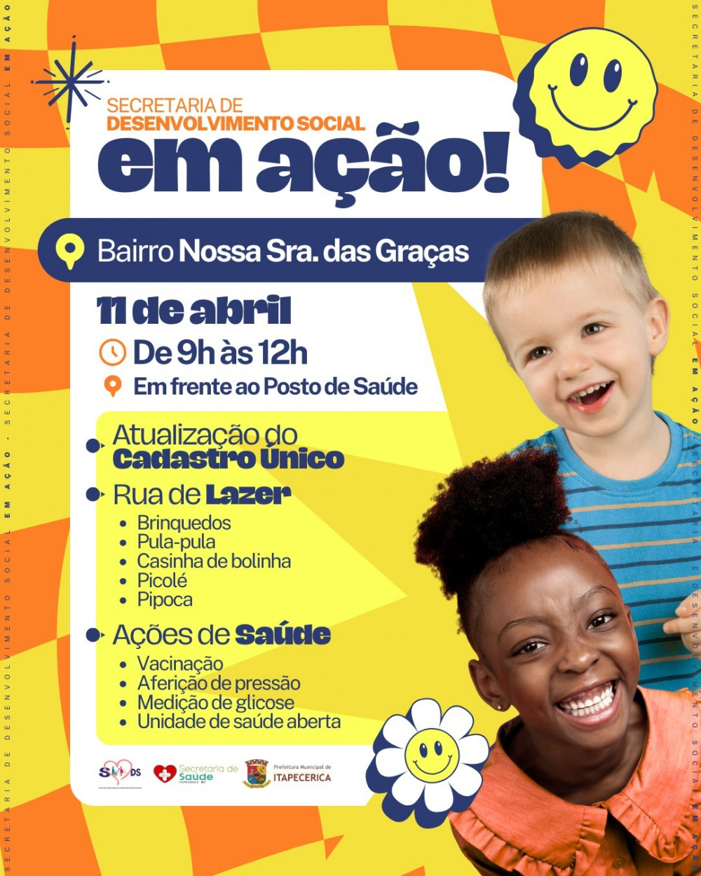 ITAPECERICA – A manhã deste sábado (11) será de intensa movimentação e cuidado com a comunidade no bairro Nossa Senhora das Graças. A Prefeitura de Itapecerica, unindo forças entre as secretarias de Desenvolvimento Social e Saúde, promove mais uma etapa do programa itinerante “Desenvolvimento Social em Ação”.