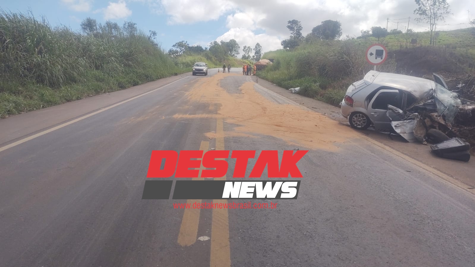 PATOS DE MINAS (MG) – Um grave acidente de trânsito mobilizou diversas equipes de resgate na manhã deste domingo (12). A colisão, que envolveu um caminhão carregado com cal e um veículo de passeio, ocorreu na altura do km 176 da rodovia MGC-354, trecho pertencente ao município de Patos de Minas.