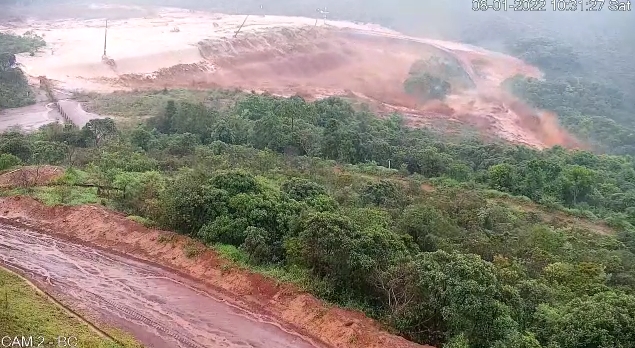 Imagens de um vídeo mostram o exato momento do transbordamento ocorrido na barragem Mina Pau Branco, de responsabilidade da mineradora Vallourec, no último sábado (8). Na ocasião, o dique de contenção não suportou o volume de água, transbordou e invadiu a BR-040, na altura de Nova Lima, na Região Metropolitana de Belo Horizonte, deixando uma pessoa ferida e interditando a rodovia por dias.